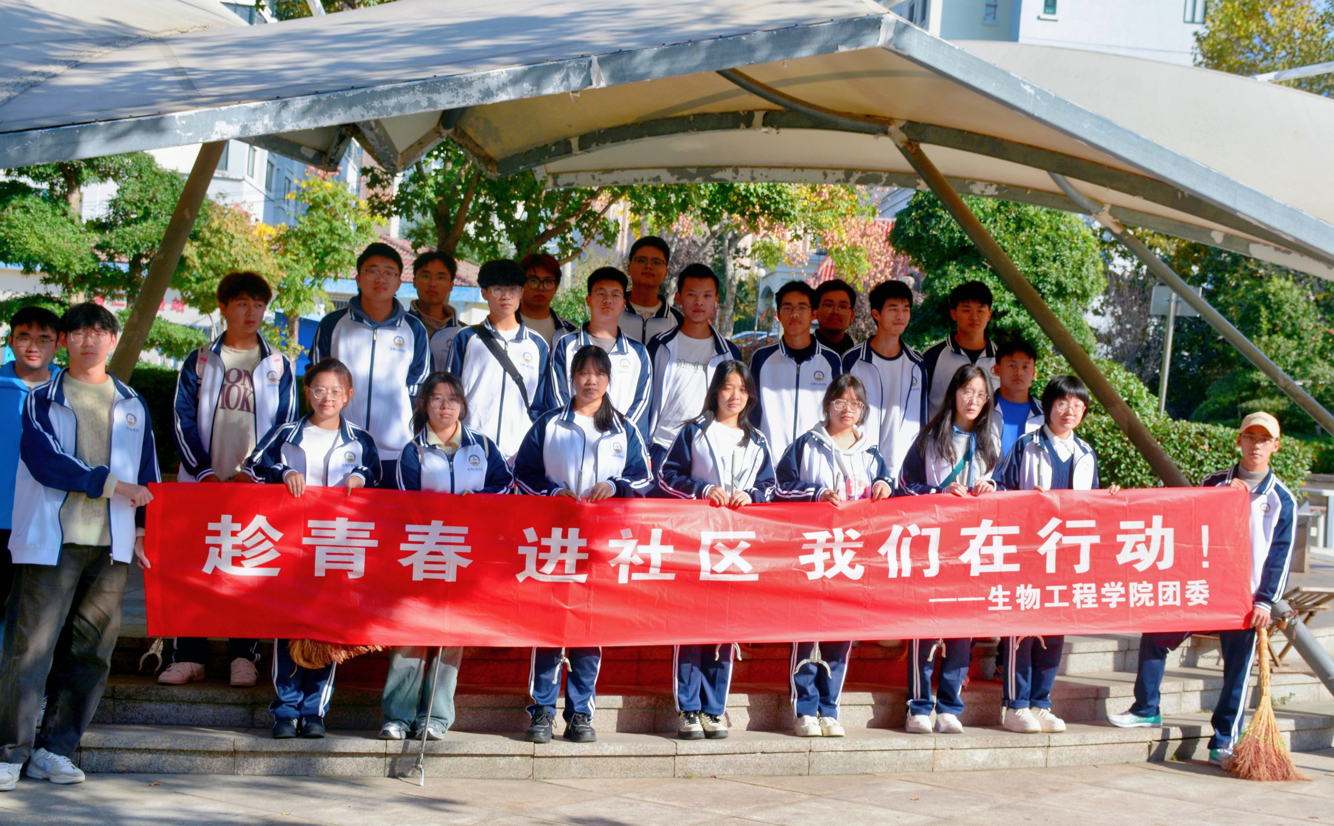 接着同学们在社区工作人员的带领下,来到了室外进行了“口袋公园”认领工作,并对社区环境进行卫生清洁。同学们分成两个小组,有条不紊地对社区进行了细致的打扫。街道上,他们仔细清扫着路面的垃圾,无论是落叶、纸屑还是烟头,都被一一清理。在绿化带区域,同学们更是小心翼翼,用夹子夹出隐藏在草丛中的杂物,确保这片绿色空间的纯净。他们不放过任何一个卫生死角,用手中的扫帚、夹子和垃圾袋,努力擦亮社区容颜。同学们的每一次弯腰,都是对公园环境的一次呵护;每一次捡起垃圾的动作,都是在为美丽的公园画卷抹去污渍。