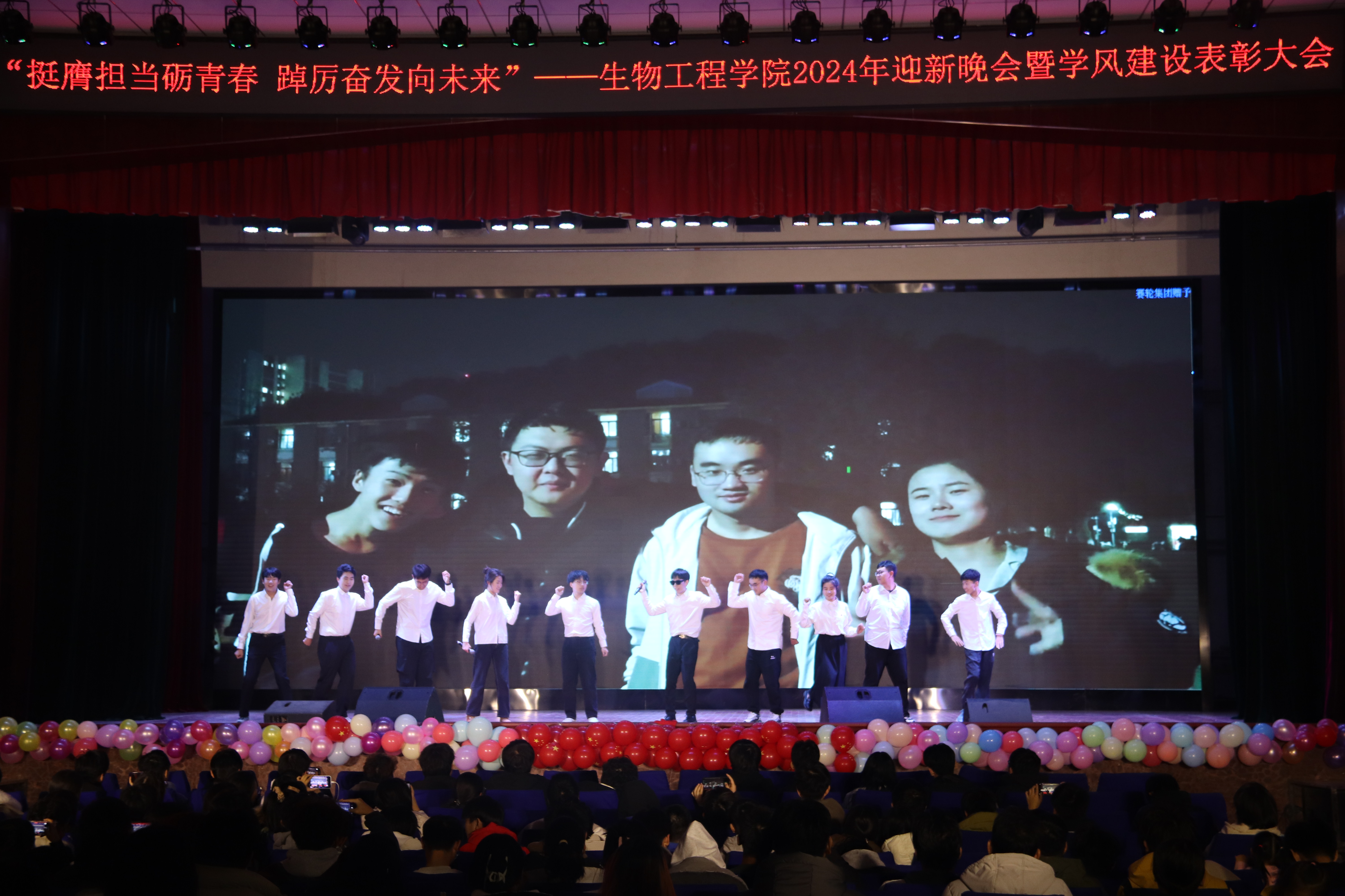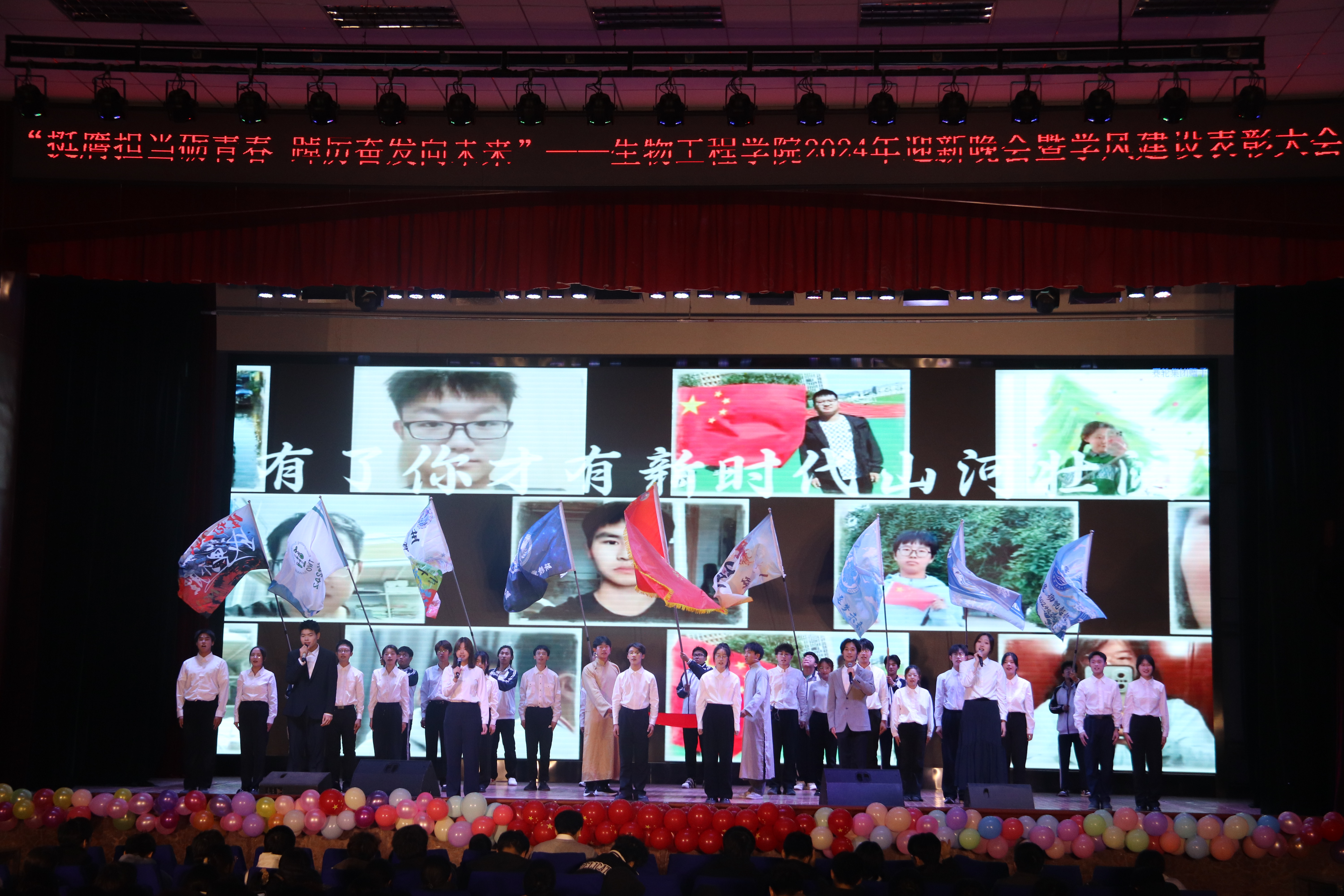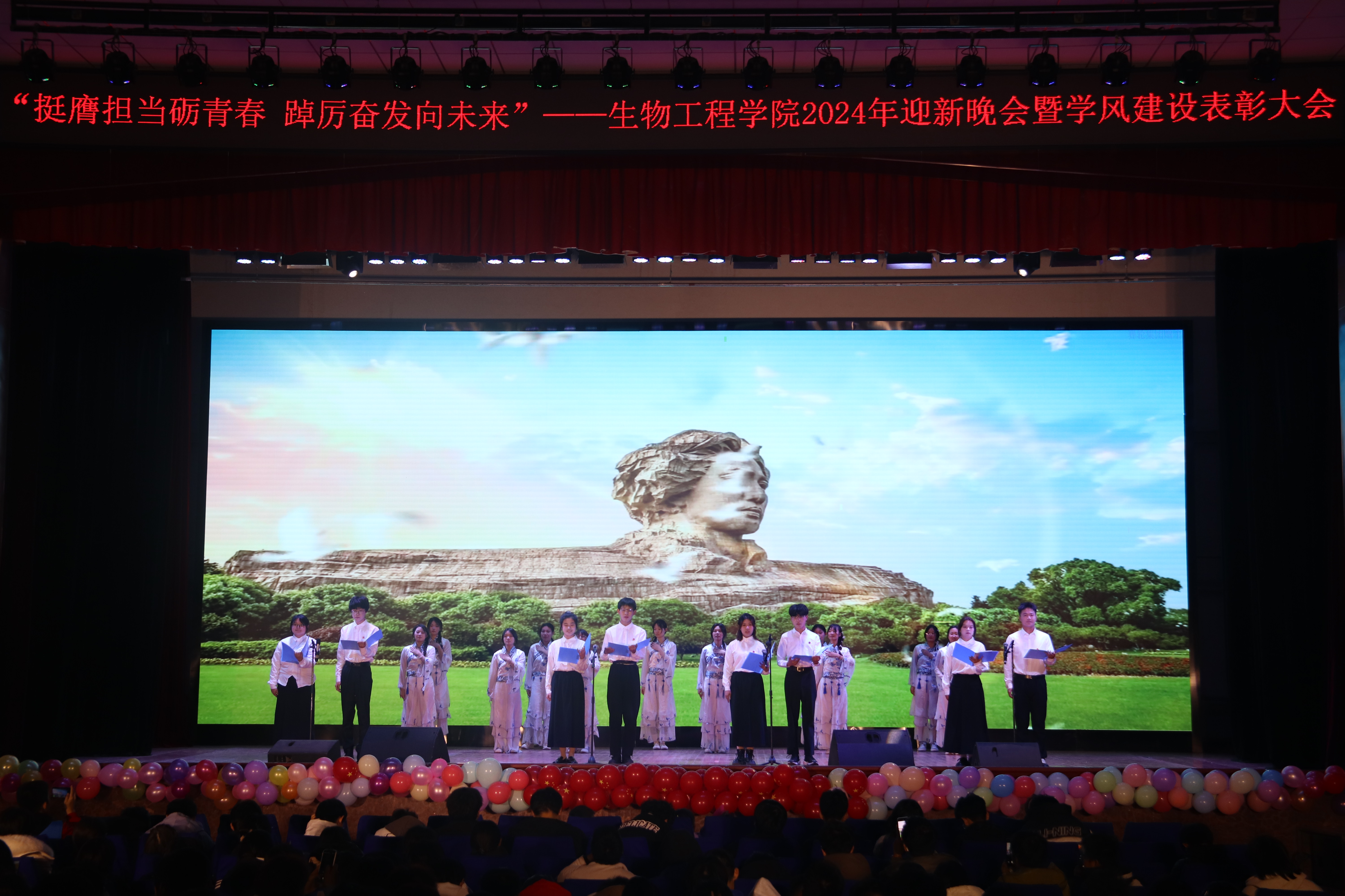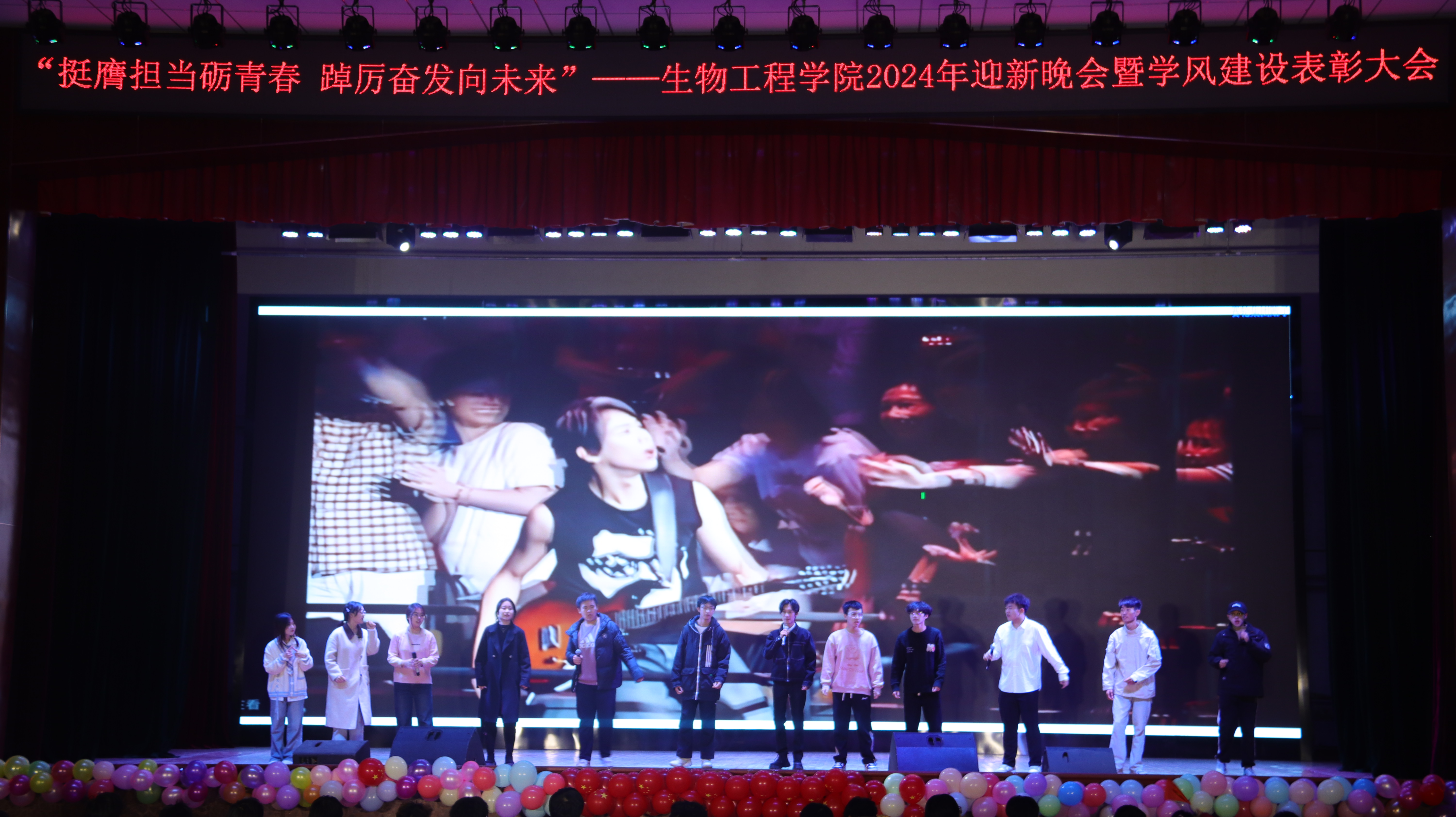 本次晚会以“挺膺担当砺青春,踔厉奋发向未来”为主题,分为《赓续笃行扬“新”帆》《激扬青春展“新”颜》《挺膺担当绘“新”篇》三个篇章。彰显了生物学子在新时代新征程中,以坚定的信念和不懈的努力,扬起青春航帆,展现青春面貌,用实际行动和担当精神书写为中国现代化挺膺担当的青春篇章。