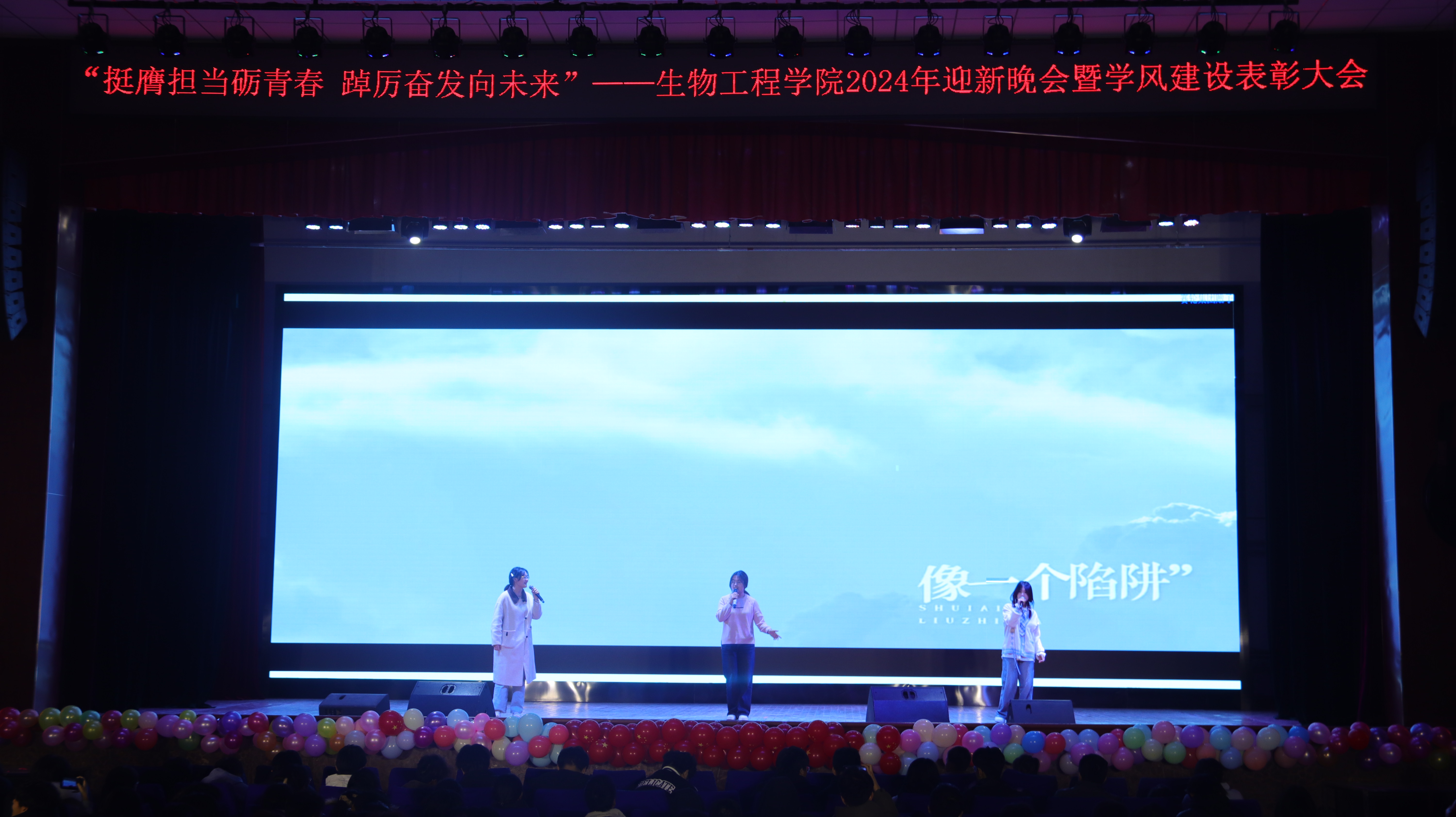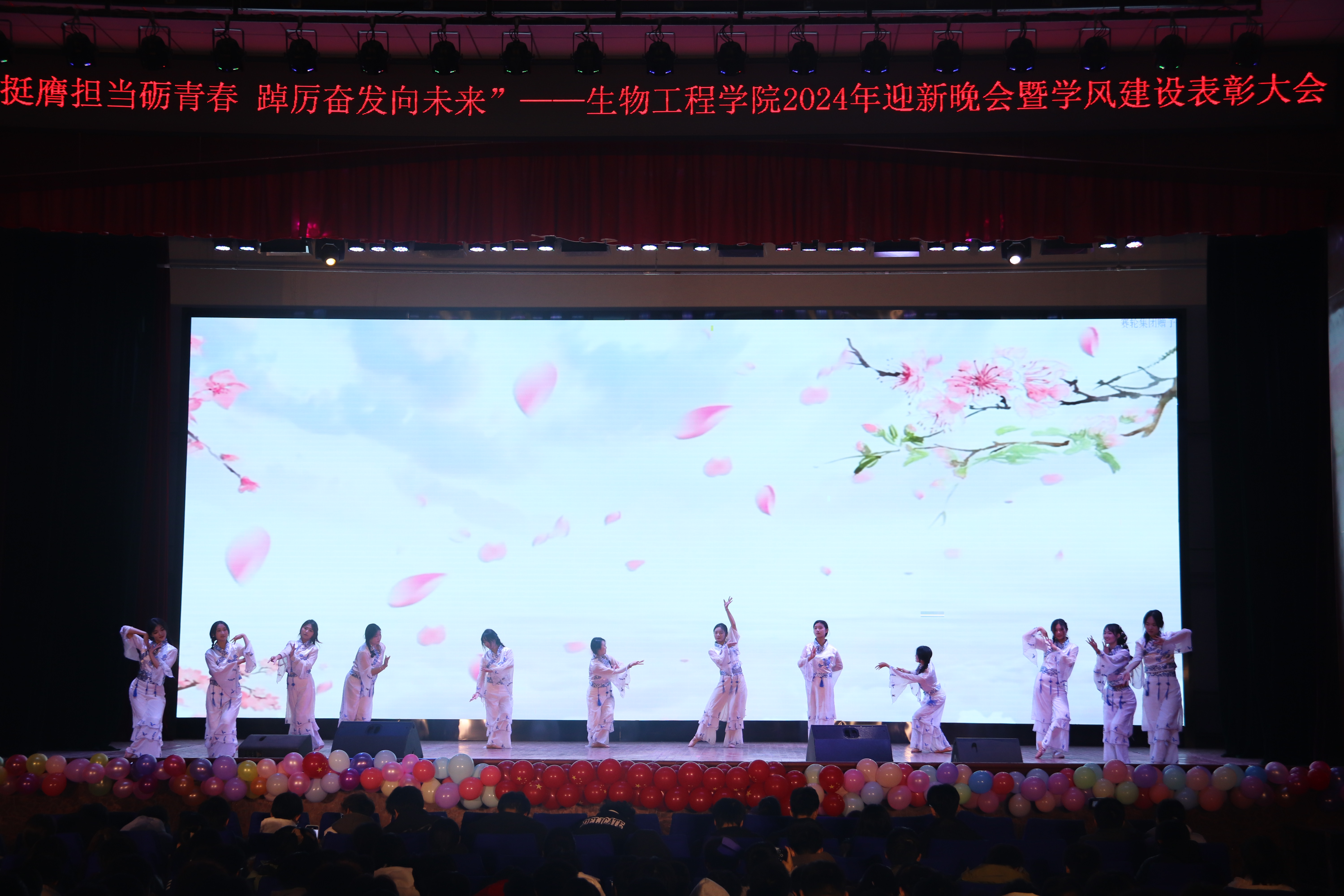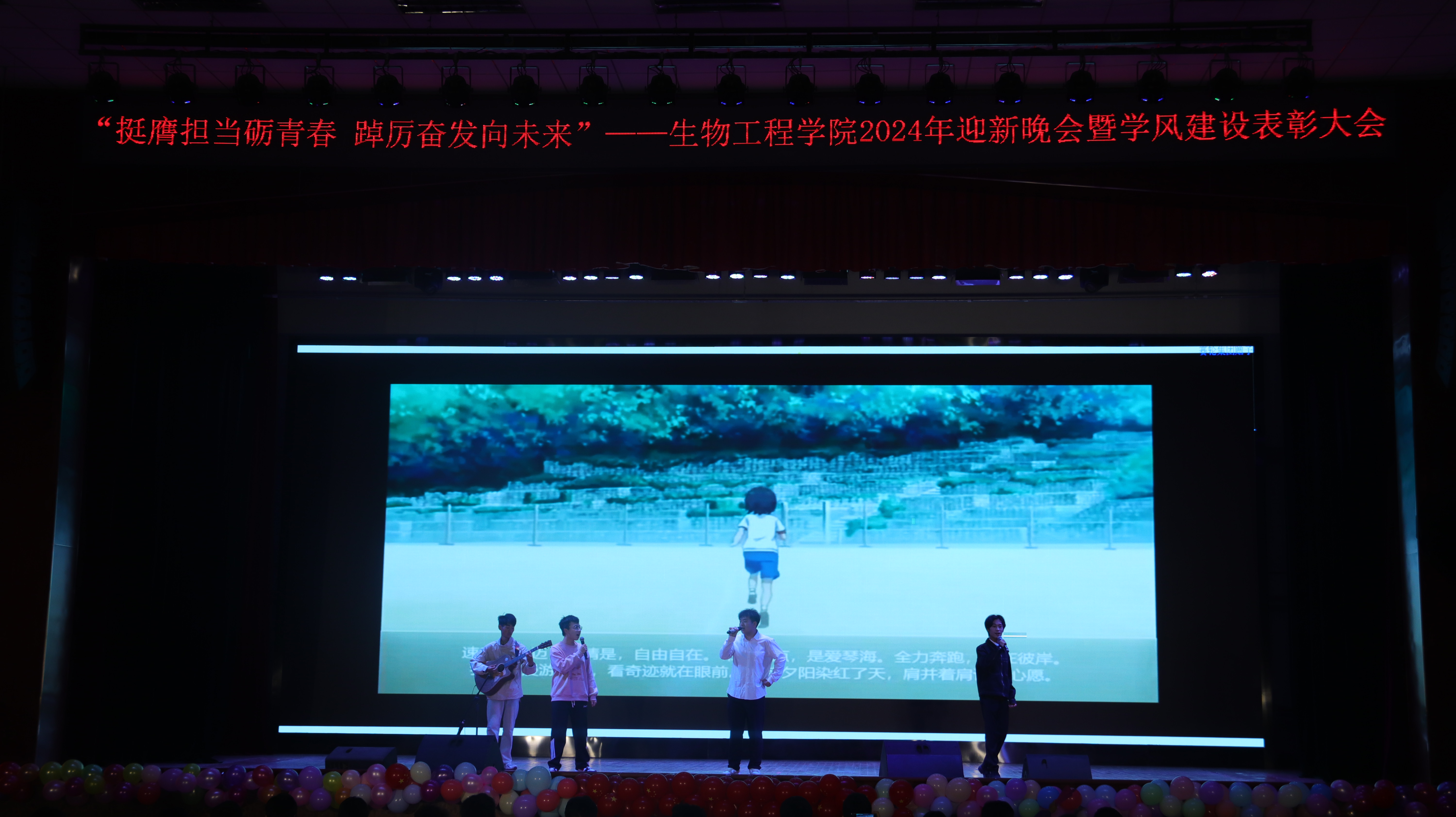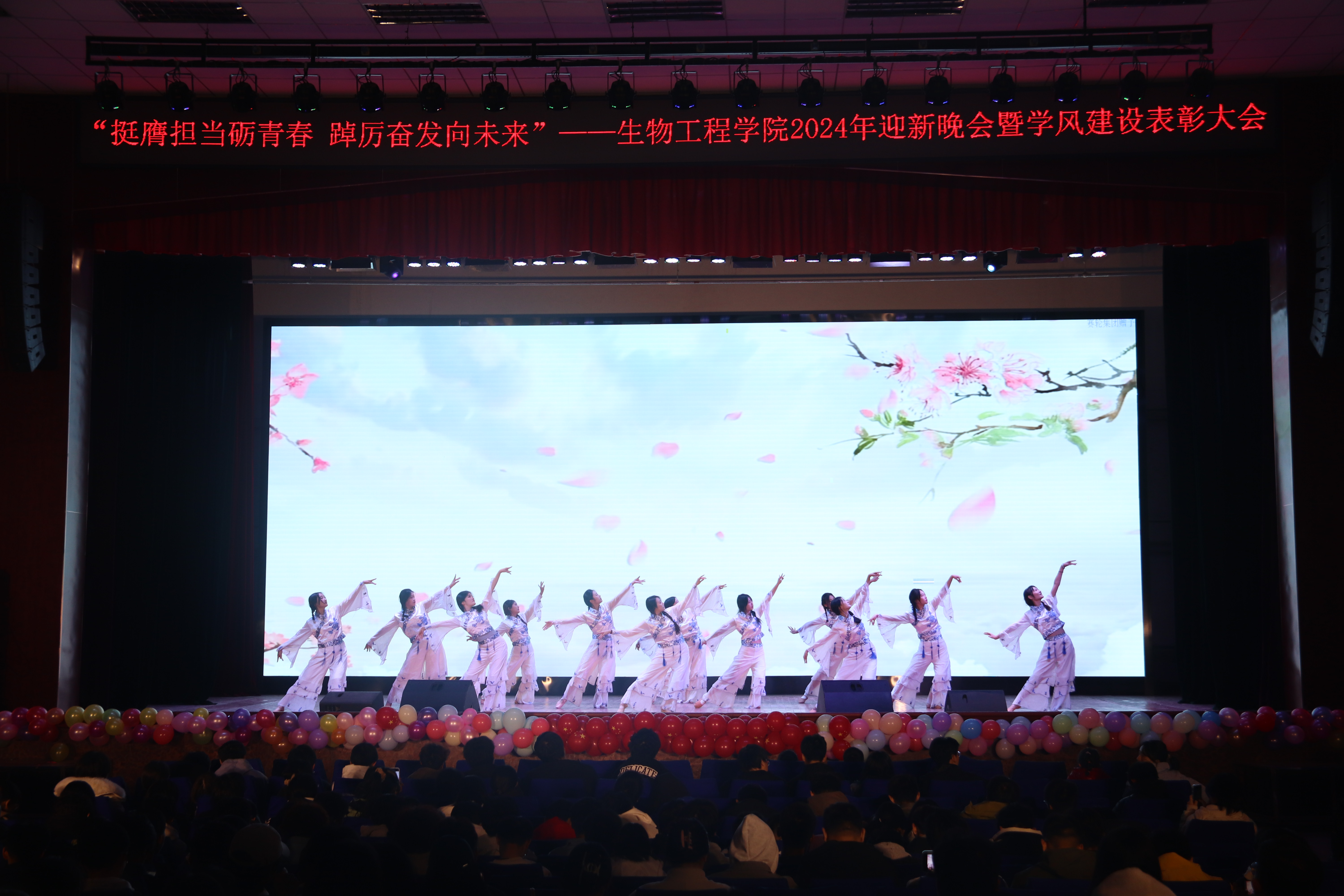 本次晚会以“挺膺担当砺青春,踔厉奋发向未来”为主题,分为《赓续笃行扬“新”帆》《激扬青春展“新”颜》《挺膺担当绘“新”篇》三个篇章。彰显了生物学子在新时代新征程中,以坚定的信念和不懈的努力,扬起青春航帆,展现青春面貌,用实际行动和担当精神书写为中国现代化挺膺担当的青春篇章。
