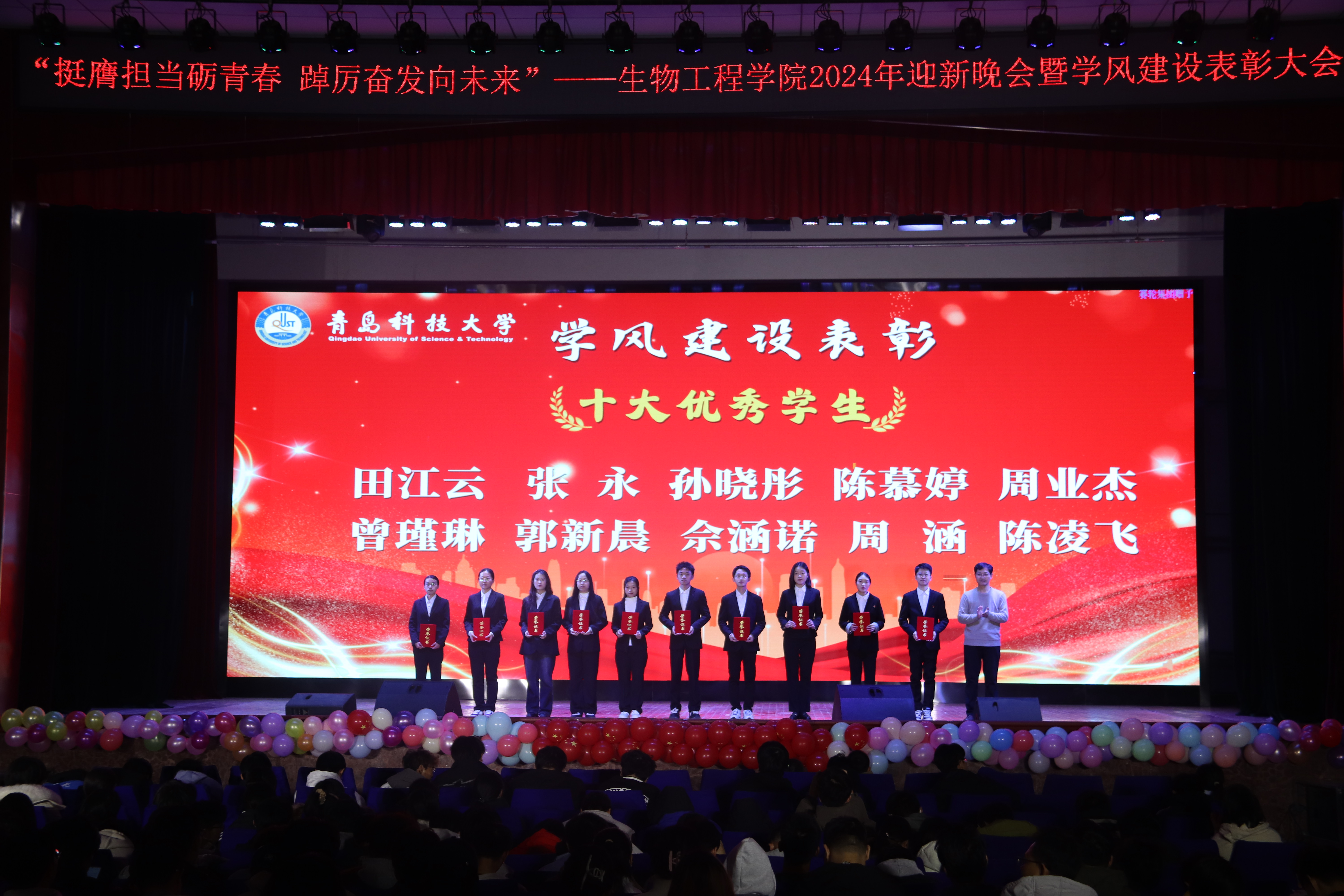 williamhill威廉希尔举办 “挺膺担当砺青春,踔厉奋发向未来”2024年迎新晚会暨学风建设表彰大会