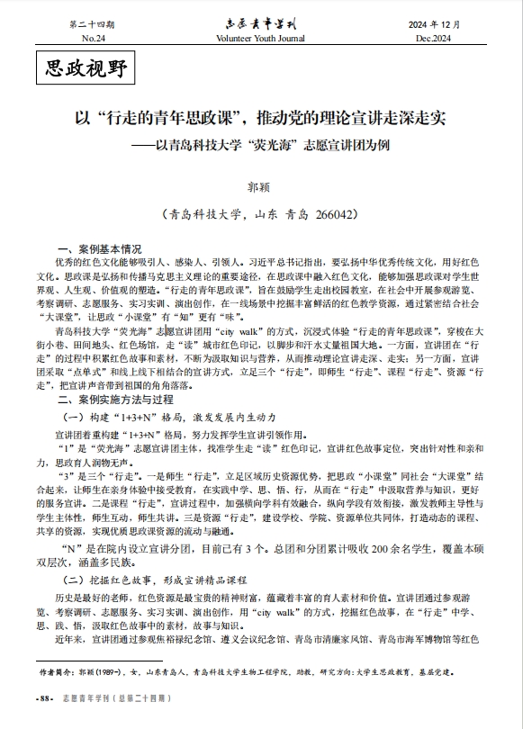近日,《志愿青年学刊》第二十四期刊登williamhill威廉希尔“荧光海”志愿宣讲团特色做法。