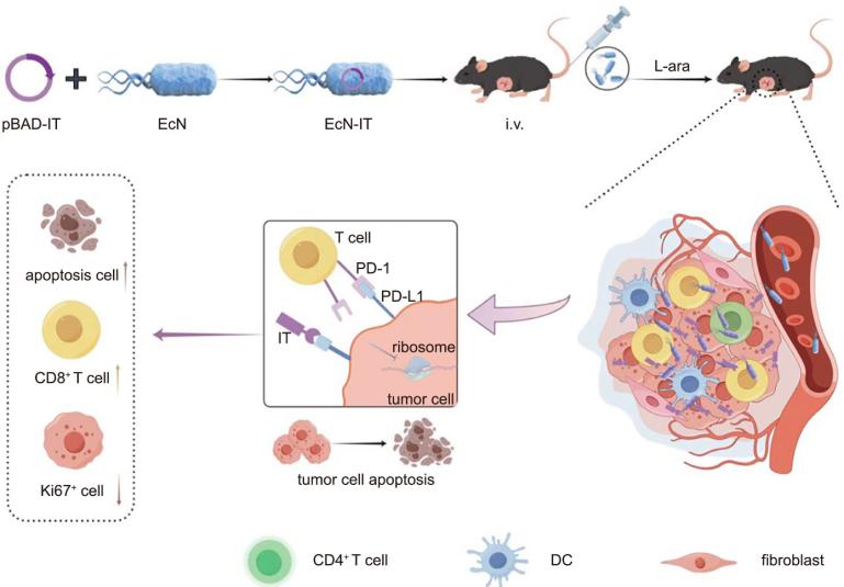 这项研究不仅为提高免疫检查点抑制剂的治疗效果提供了新思路,还展示了利用合成生物学技术改造益生菌作为免疫毒素递送载体的巨大潜力。通过活细菌递送免疫毒素,有望在提升治疗效果的同时,降低对正常组织的毒副作用,为癌症患者带来更加安全、有效的治疗选择。