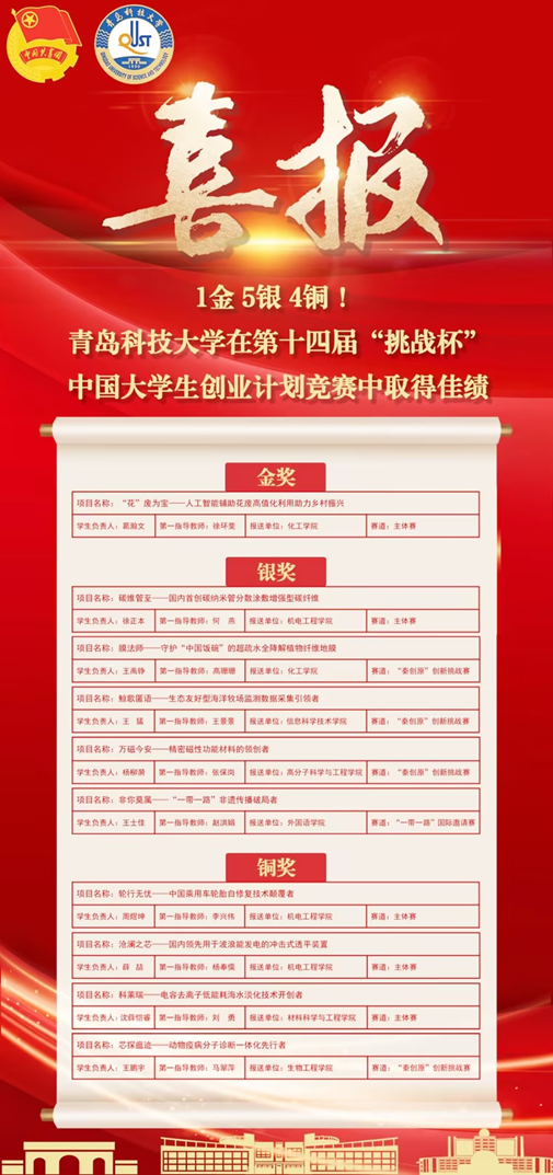 第十九届“挑战杯”全国大学生课外学术科技作品竞赛2024年度“揭榜挂帅”专项赛终审决赛于11月8日至10日在北京、11月15日至17日在浙江举办。我院参赛项目——纳米纤维素增强聚乳酸可降解材料的研制(指导教师:王松林、车玉章,负责人:王欣,团队成员:李璇、吴佳慧、王艳华)获三等奖。
