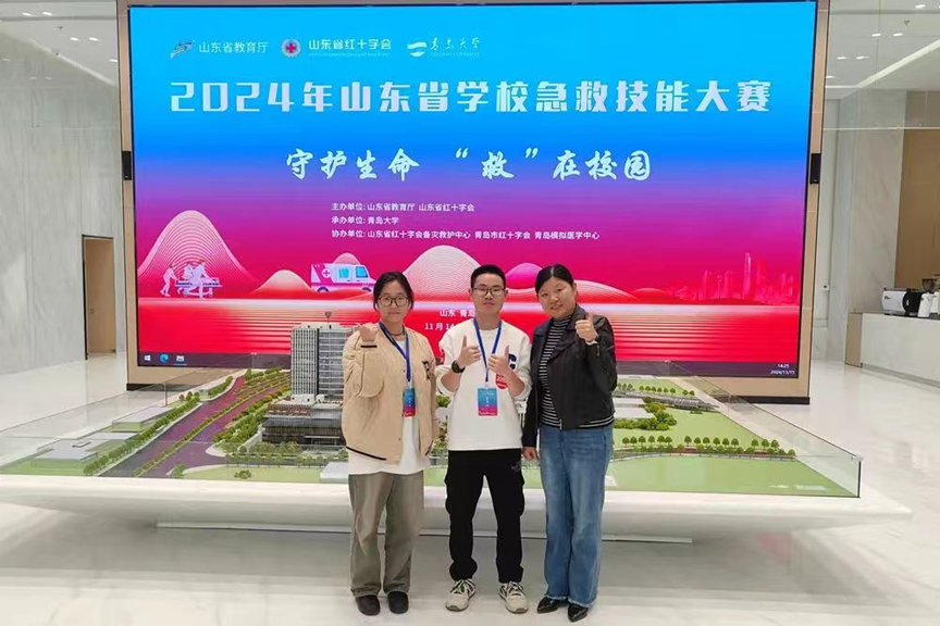 2024年山东省学校急救技能大赛中,由校医院医生纪永丽指导、红十字学生分会志愿者陈培艺(williamhill威廉希尔)参与组成的参赛团队荣获高校学生甲组三等奖。