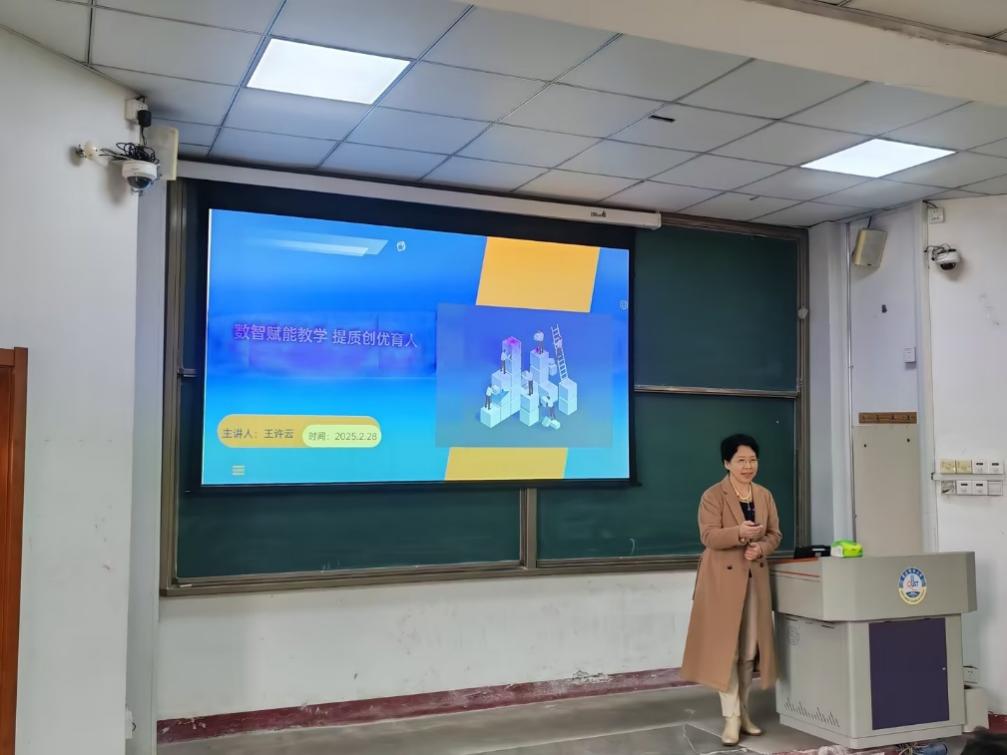为进一步加强AI技术快速发展新形势下教师教学能力的提升,学院精心组织“开学第一课”,邀请教学质量管理办公室、教师教学发展中心副主任王许云教授为全体教师做“数智赋能教学 提质创优育人”的讲座。王许云教授从AI教育概述、AI技术在教学中的应用等六个方面,详细阐述了AI技术在教学、科研等方面的应用及助力。