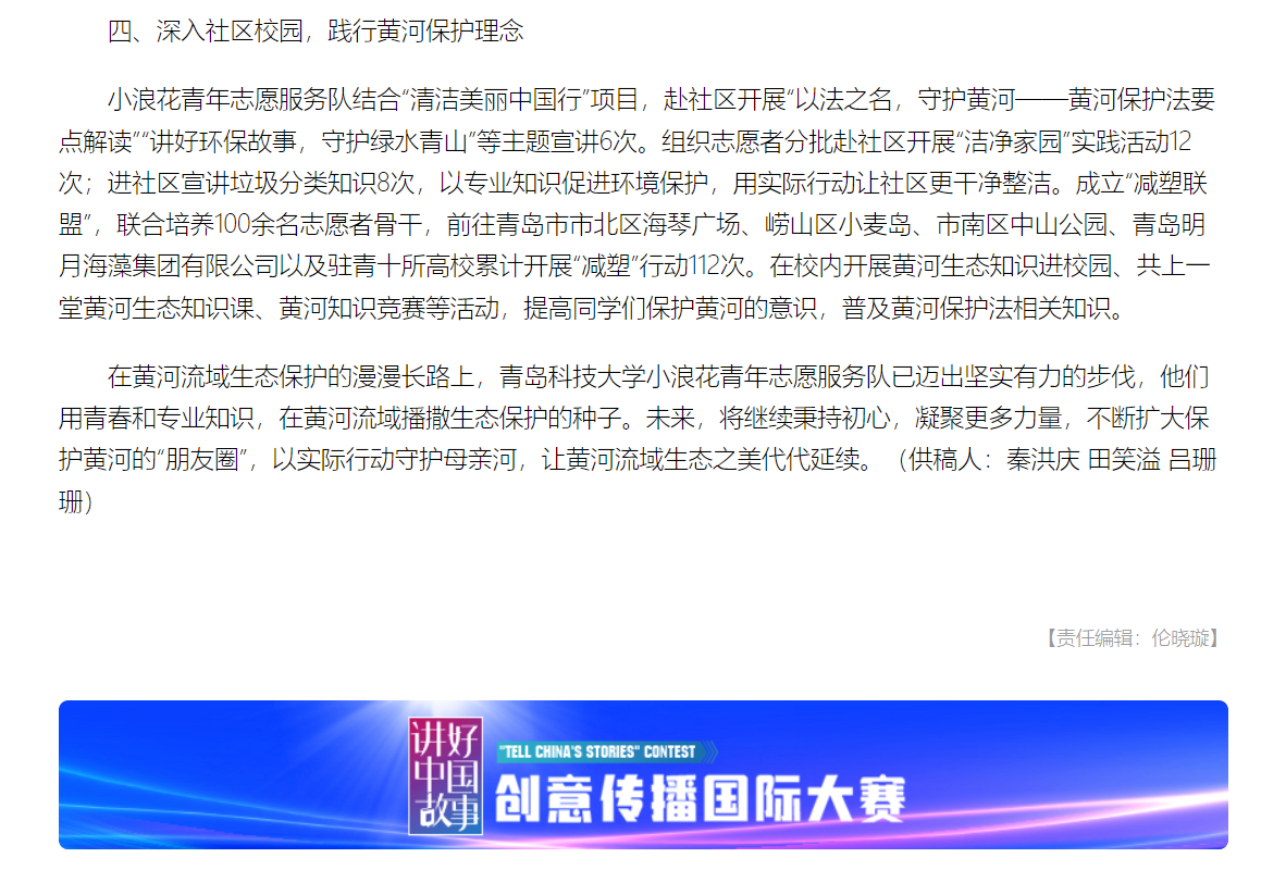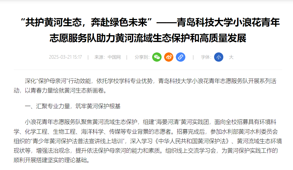 【中国网】“共护黄河生态,奔赴绿色未来”——williamhill中国小浪花青年志愿服务队助力黄河流域生态保护和高质量发展