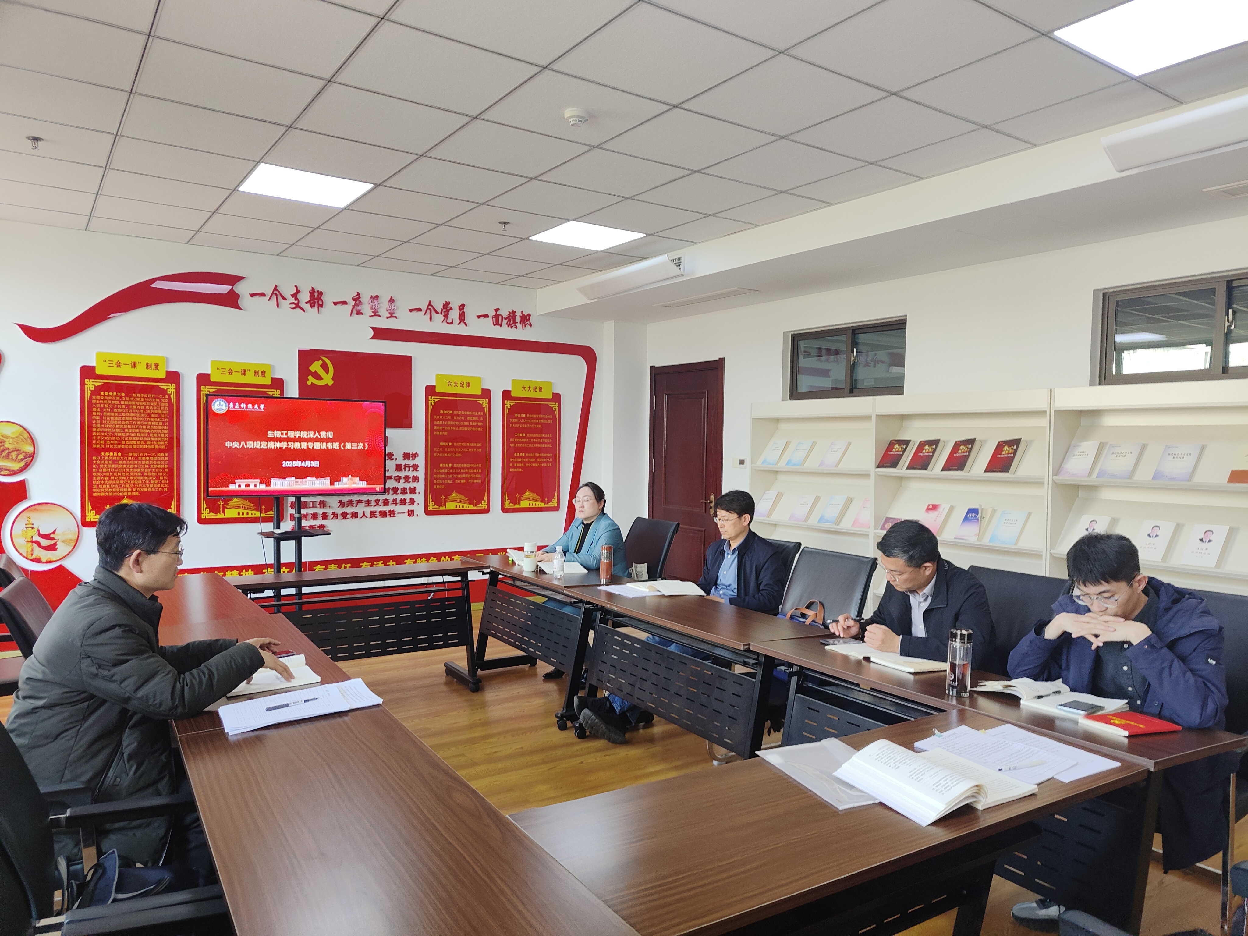 4月3日下午,学院班子成员在崂山校区综合服务楼4008会议室进行专题学习,每人逐字逐句领学《习近平关于加强党的作风建设论述摘编》讲话原文。