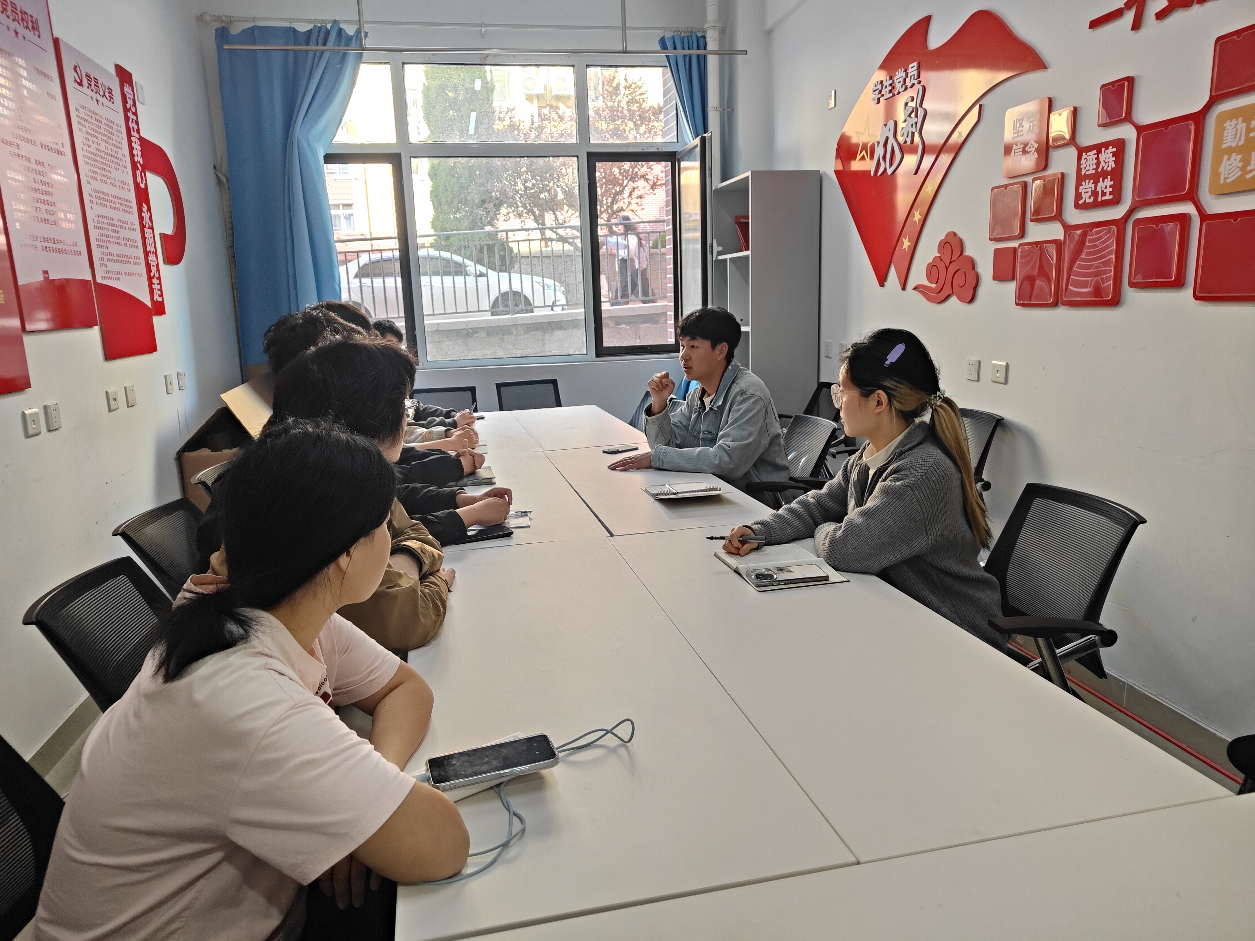 会上,全体成员共同进行国家安全教育公开课网络学习。在学习过程中,大家认真聆听,深入了解国家安全的重要意义、涵盖范畴以及面临的各种挑战,进一步强化了国家安全意识。王泽熠、赵梦艳、郭新晨结合“国家安全”主题,梳理学生可以参加的赛事,并从“为何参赛,如何备赛,怎样胜赛”三部分进行经验分享。在“为何参赛”方面,他们强调参与此类赛事不仅能够加深自身对国家安全知识的理解与运用,更能培养社会责任感与使命感,提升个人综合素质,同时为学校和学院争得荣誉。关于“如何备赛”方面,他们分享了详细的策略,建议同学们深入研究赛事规则与主题,广泛收集资料,组建优势互补的团队,并制定合理的学习与训练计划。在“怎样胜赛”方面,他们着重指出要突出创新思维,紧密结合时事热点,注重团队协作与展示技巧,以最佳状态呈现参赛作品。