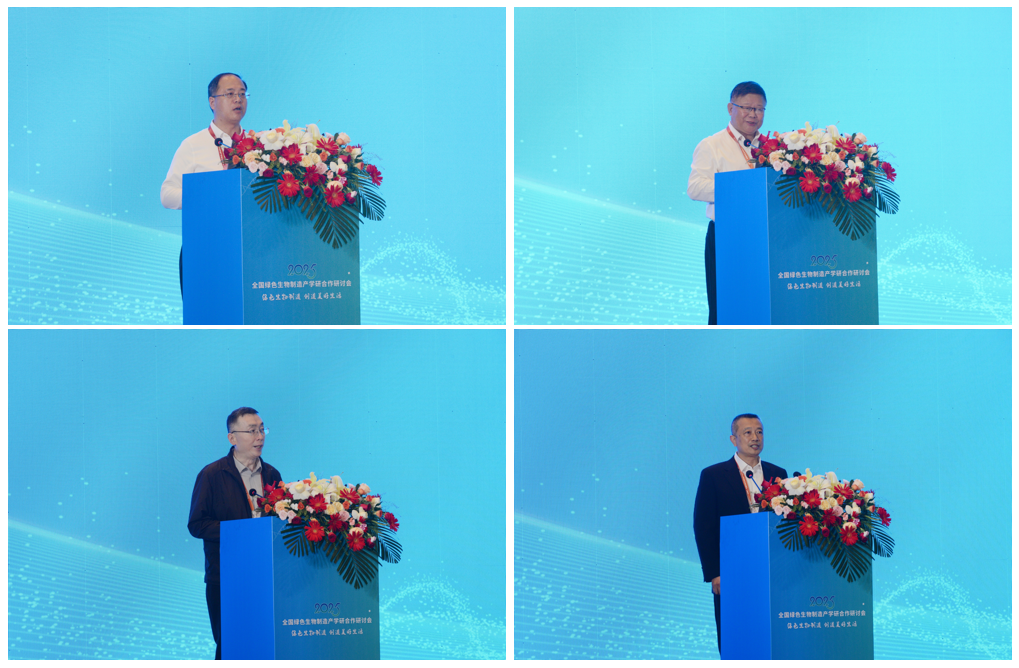 元英进院士致辞,他指出,绿色生物制造凭借其“碳减排、低能耗、高效率”的核心优势,正以前所未有的力量重塑化工、医药、农业等传统产业格局,为人类发展注入全新活力。此次全国绿色生物制造产学研合作研讨会的召开,具有极为重要的现实意义和深远的历史意义,希望大家在会议期间能够充分交流、深入研讨、碰撞出智慧的火花,共同推动我国绿色生物制造产业蓬勃发展;张宏翔秘书长致辞,他指出,生物制造作为新质生产力的重要赛道和新业态,在全球主要经济体中占据着“必争之地”的重要位置。在生物制造领域,中国生物工程学会高质量地开展了服务科技工作者、服务创新驱动发展、服务党和政府科学决策的工作。希望通过深入的交流与合作,促进产学研各方的协同创新,加速绿色生物制造技术的研发和应用,为我国的经济发展和生态文明建设做出积极贡献;刘红英副主席致辞,他指出,绿色生物制造技术正迎来前所未来的机遇。青岛市委、市政府高度重视科技创新工作,把科技创新作为推动高质量发展的核心动力,在绿色生物制造领域具有良好的产业基础和科研优势,已经形成了一批具有国际竞争力的生物制造企业。青岛市科协将积极推进青岛科技会展之城建设,积极助力青岛会展产业发展,提升城市科技创新能力和综合竞争力。
