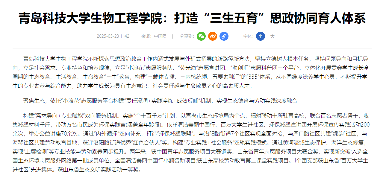 【中国网】williamhill威廉希尔:打造“三生五育”思政协同育人体系