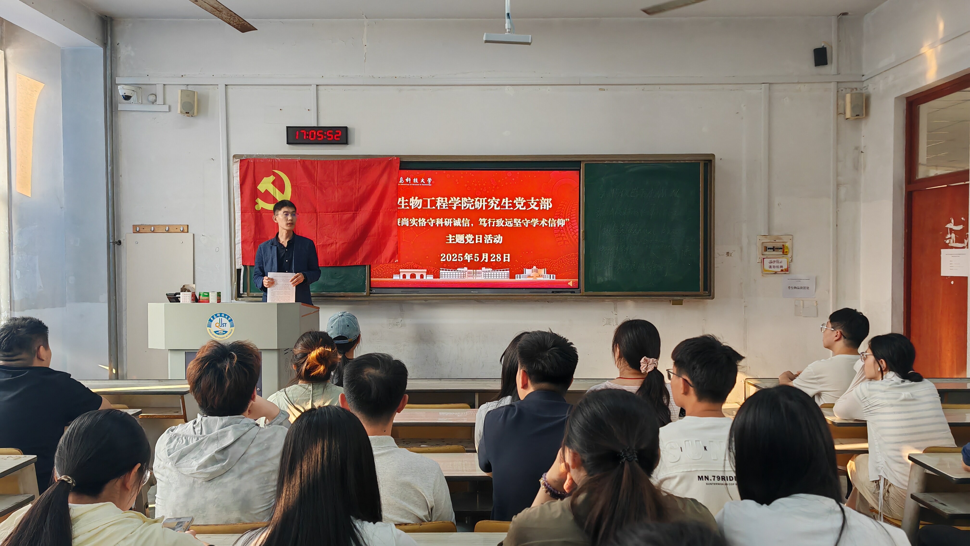 王浩然领学了研究生学术不端行为的典型案例,并深入剖析了这些案例产生的原因、造成的危害以及背后反映出的学术道德问题。随后,全体党员一同观看了学术不端警示教育片,以直观、生动的方式进一步强化了对学术不端行为严重性的认识,通过真实事件警示大家守住学术底线,进一步增强了学生党员对科研规范的理解和敬畏。