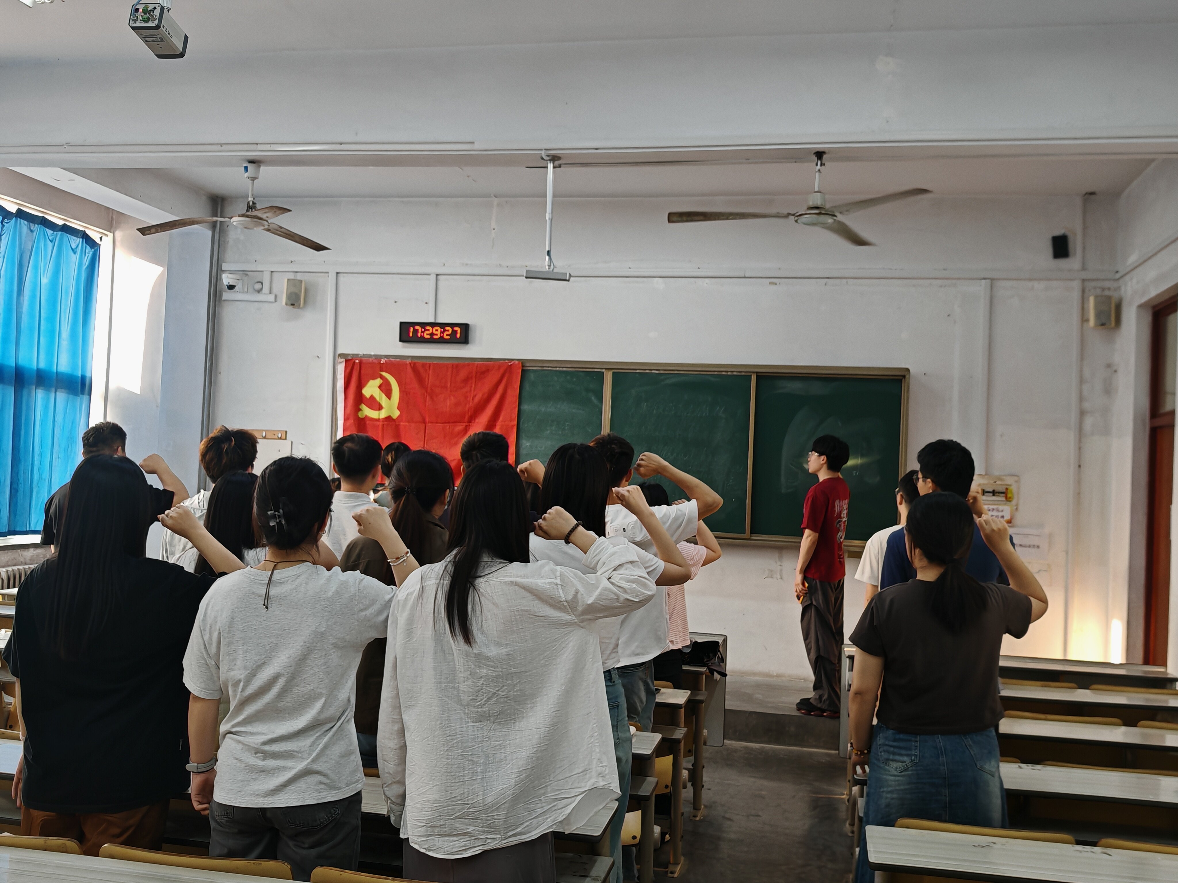 最后,王浩然带领全体党员面向党旗,庄严宣誓,重温入党誓词。铿锵有力的誓言,不仅唤醒了党员们入党初心,也进一步坚定了他们在科研道路上求真务实、诚实守信的信念与责任担当。