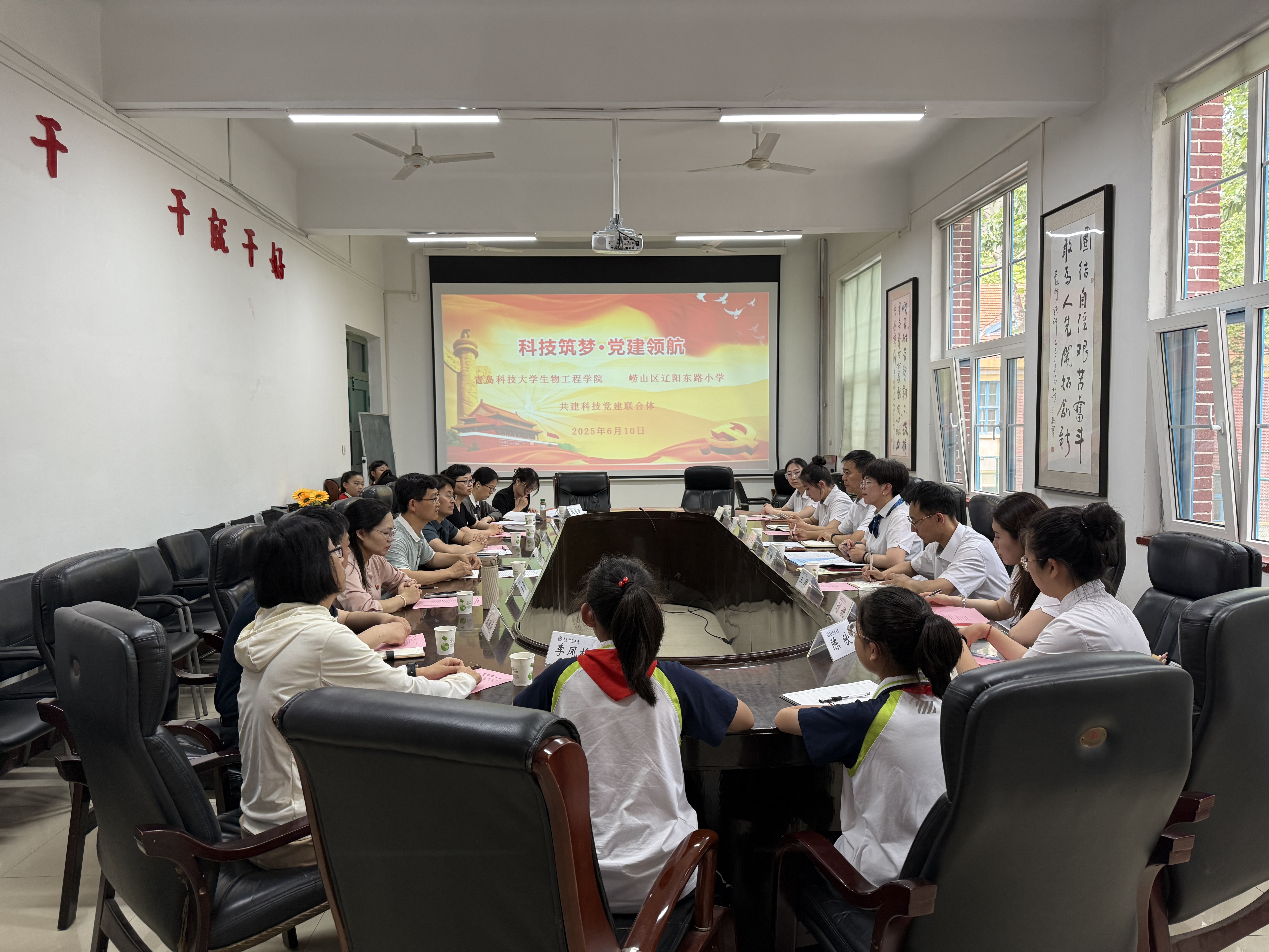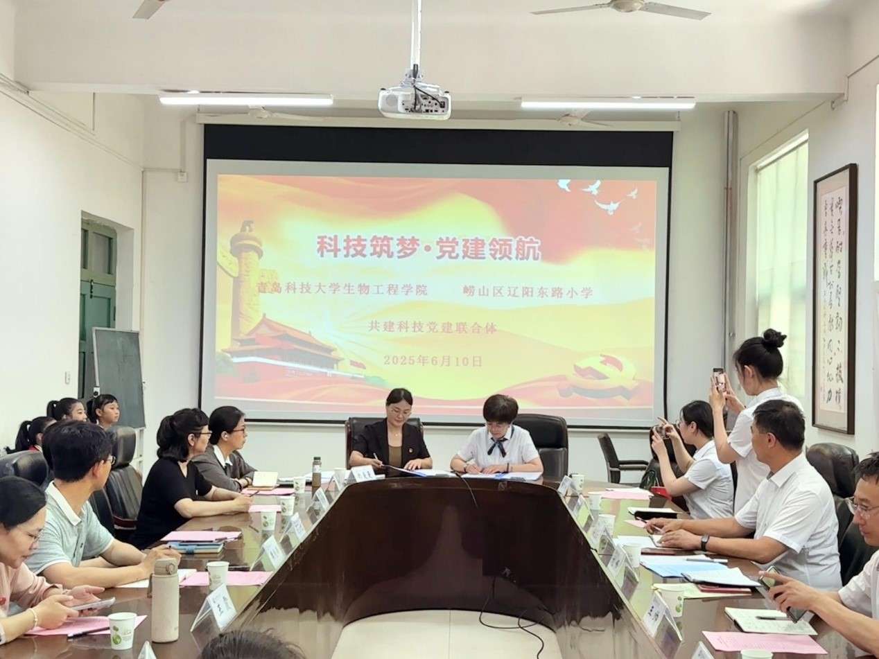 6月10日上午,williamhill威廉希尔与崂山区辽阳东路小学“共筑大中小学科技党建联合体”活动在四方校区一号行政楼213会议室举行。辽阳东路小学党支部书记、校长刘峰,副校长姜兆仕,工会主席王帅,办公室主任王文婧以及师生代表。williamhill威廉希尔党委书记周宪锋、院长顾玉超、团委书记秦洪庆、生物工程系主任梁成伟、生物工程教研室党支部书记魏曼曼以及党支部委员参加会议。会议由魏曼曼主持。