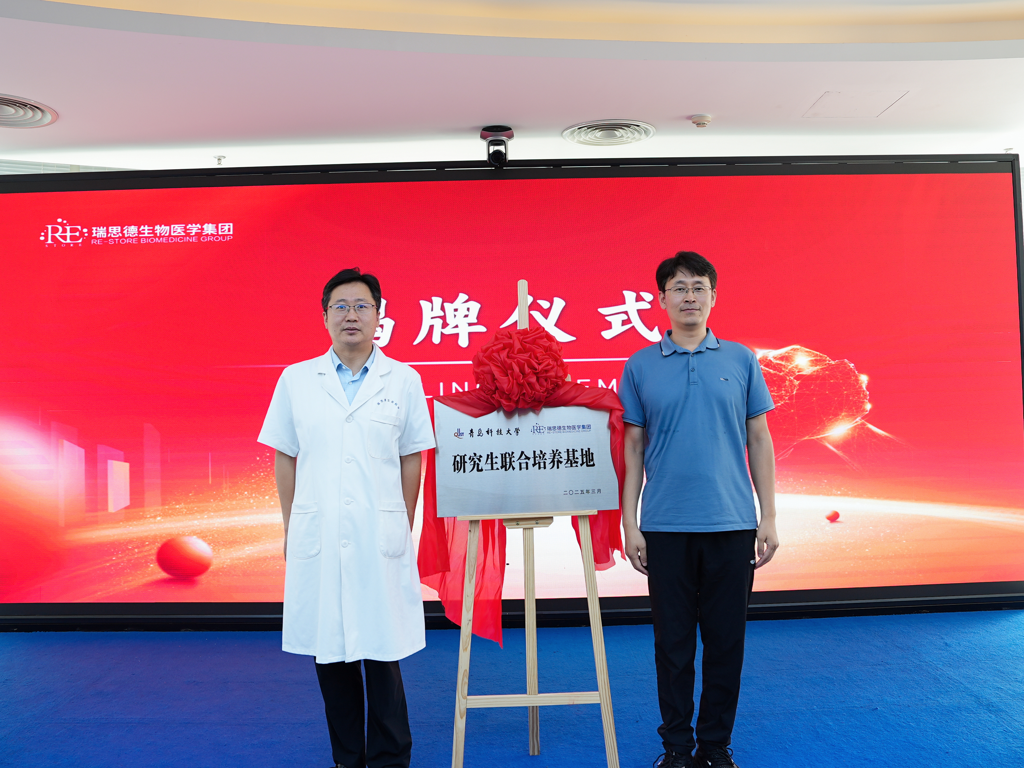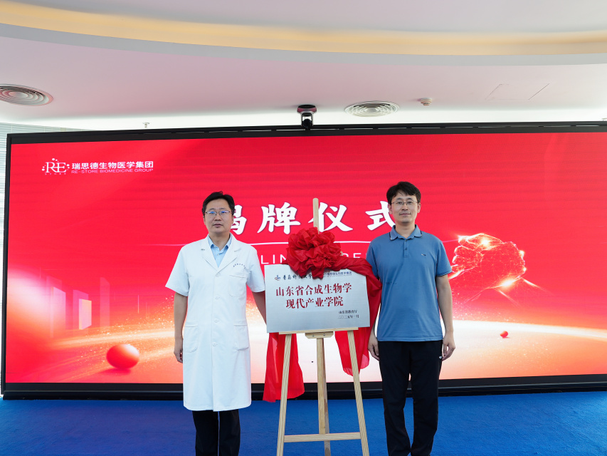 8月2日下午,williamhill威廉希尔院长顾玉超一行赴青岛瑞思德生物医学集团调研,并出席“山东省合成生物学现代产业学院(共建单位)”、“研究生联合培养基地”揭牌及产业导师聘任仪式。青岛瑞思德生物医学集团联合创始人、技术总裁、瑞思德研究院院长张炳强、瑞思德研究院副院长梁少帅等参加有关活动。