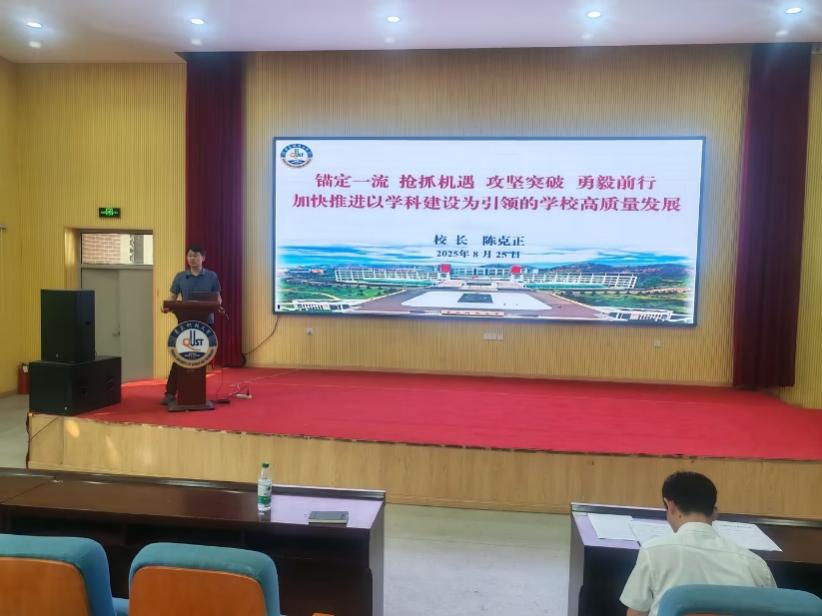 院长顾玉超专题传达陈克正校长《锚定一流 抢抓机遇 攻坚突破 勇毅前行 加快推进以学科建设为引领的学校高质量发展》讲话精神,结合学院实际,从 “专业建设对标一流、学科建设补齐短板、人才培养提质增效” 三个维度,深入分析学院与学校 “十五五” 一流学科建设目标的差距,明确新学期需重点推进的任务,为学院战略升级定方向。