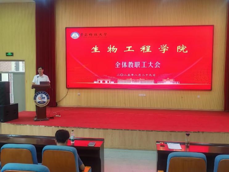 各分管领导结合分管领域,围绕 “补短板、强优势、谋长远” 思路,将新学期任务与学院 “十四五” 收官、“十五五” 谋划目标深度衔接,提出具体工作要求。学院党委副书记、副院长刘浩聚焦学生工作 “育人为本” 核心,从迎新工作精细化、新生入学教育体系化、舆情研判预防常态化三个维度提出要求,确保学生管理工作与 “十五五” 时期 “培养高素质创新人才” 目标对接。副院长李昉以政策引领发展,带领全体教职工专题学习《国务院及教育部人工智能最新政策解读》;同步部署推进生物工程专业认证、优化毕业生实习实践体系、强化课程归档与毕业论文(设计)检查等关键任务。副院长孟祥民围绕科研与研究生教育 “强基提质”,通报研究生导师上岗资格认定、实验室安全管理、科研基金申报等工作的成效与不足,明确新学期需重点突破的关键问题。