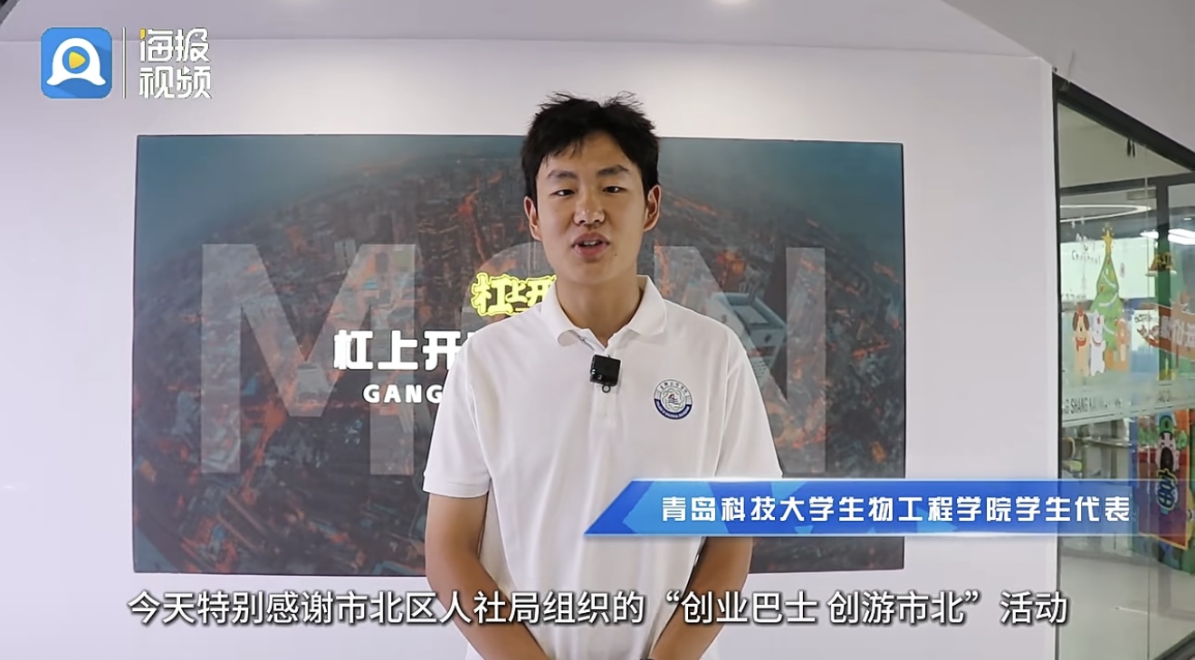 最后一站来到大鲍岛省级创业型特色街区,师生穿梭于百年里院与现代商业街区之间,切身感受老城焕新的商业魅力与创新活力。活动全程通过专业讲解、互动问答、实地体验和集章打卡的方式,生动呈现出市北区覆盖项目初创、成长、成熟各阶段的多层次、全周期创业支持体系。合生232班王泽熠受到大众网采访,代表青年学生发表实践学习感想,他说道正是这些一线经历,让我们意识到技术落地不仅需要科研能力,更需政策与产业环境的支撑,更加清晰地认识到政府对于青年创业者的投入力度,这些政策并非流于形式,而是从场地、资金、服务等多维度构建了全周期支持体系。