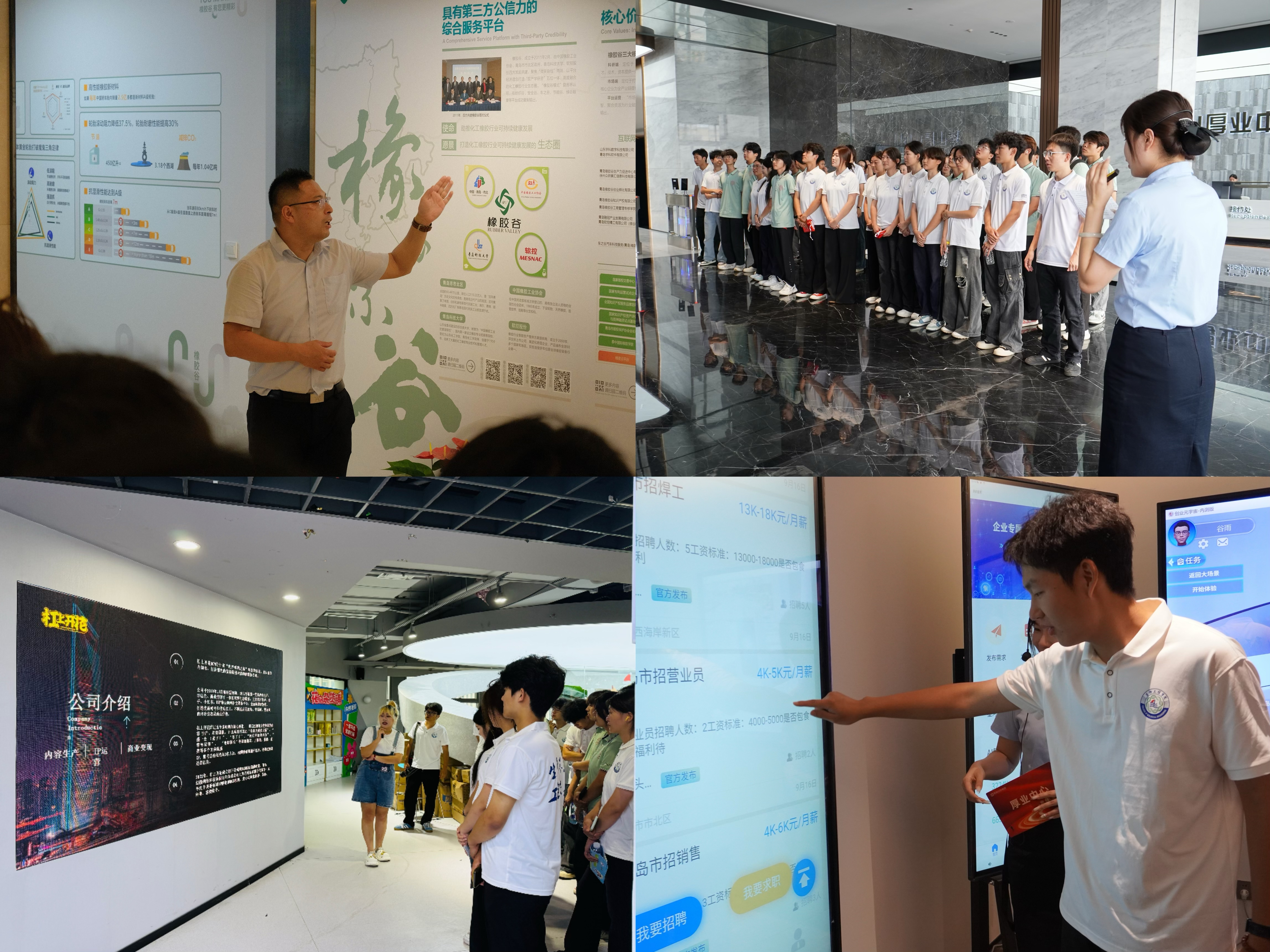 创业巴士首站抵达橡胶谷省级创业示范园,通过园区负责人的详细介绍,师生系统了解了针对大学生创业的专项扶持政策和多个成功案例,并在参观同时开启打卡集章活动,感受园区浓厚的创新创业氛围。随后队伍前往青岛市高能级创业孵化园区赋能中心,在参观开放式办公空间、独立孵化单元和多功能路演厅的过程中,亲身体验一站式创业服务。在白鹿港澳台青年创新创业实践基地,师生们来到“杠上开花”互联网公司,近距离了解其互联网平台的运营模式与发展现状,直观感受到数字经济领域的创新活力与创业生态。