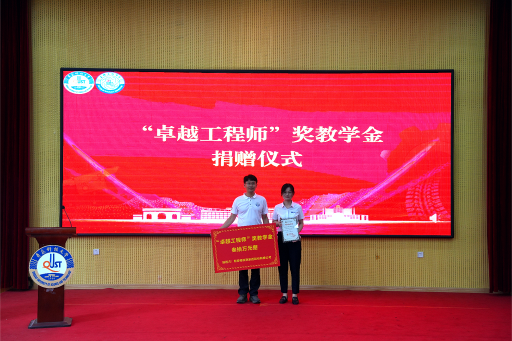 斯坦德集团向学院捐赠“卓越工程师”奖教学金,顾玉超代表学院接受捐赠并回赠捐赠证书。