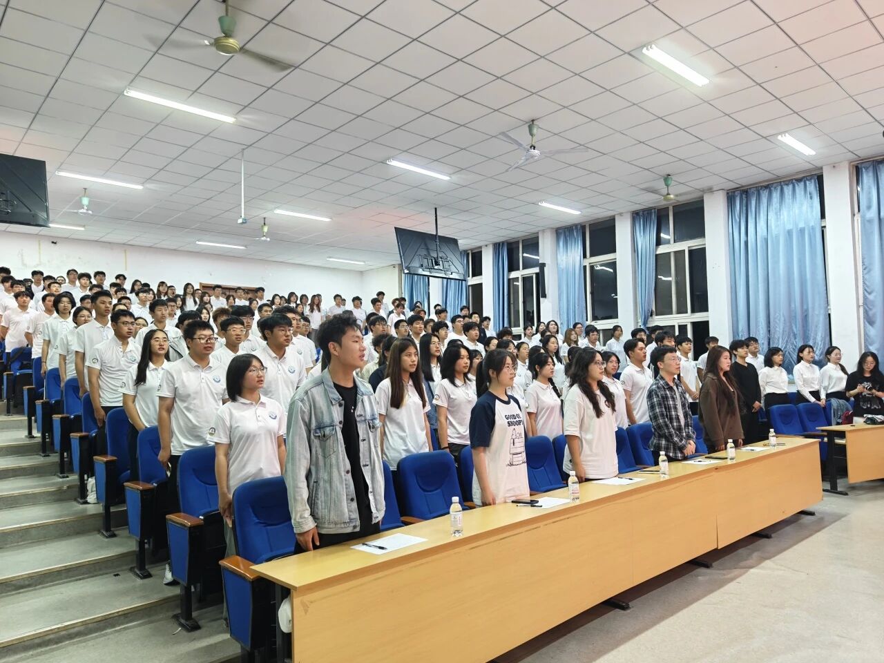 比赛开始前,全体共唱国歌。歌声铿锵,展现了生工学子昂扬向上的精神风貌。