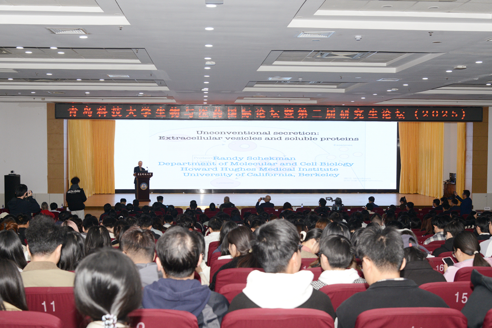 仪式后,Randy W.Schekman教授作了题为《Extracellular vesicles and biomedicalapplications》的报告,介绍了当前学术界在生物与医药领域的最新研究进展,分享了其几十年深耕科研的学术经历。报告内容深入浅出、前瞻性强,有效拓宽了师生科研视野,为现场师生提供了一场世界级的学术盛宴。