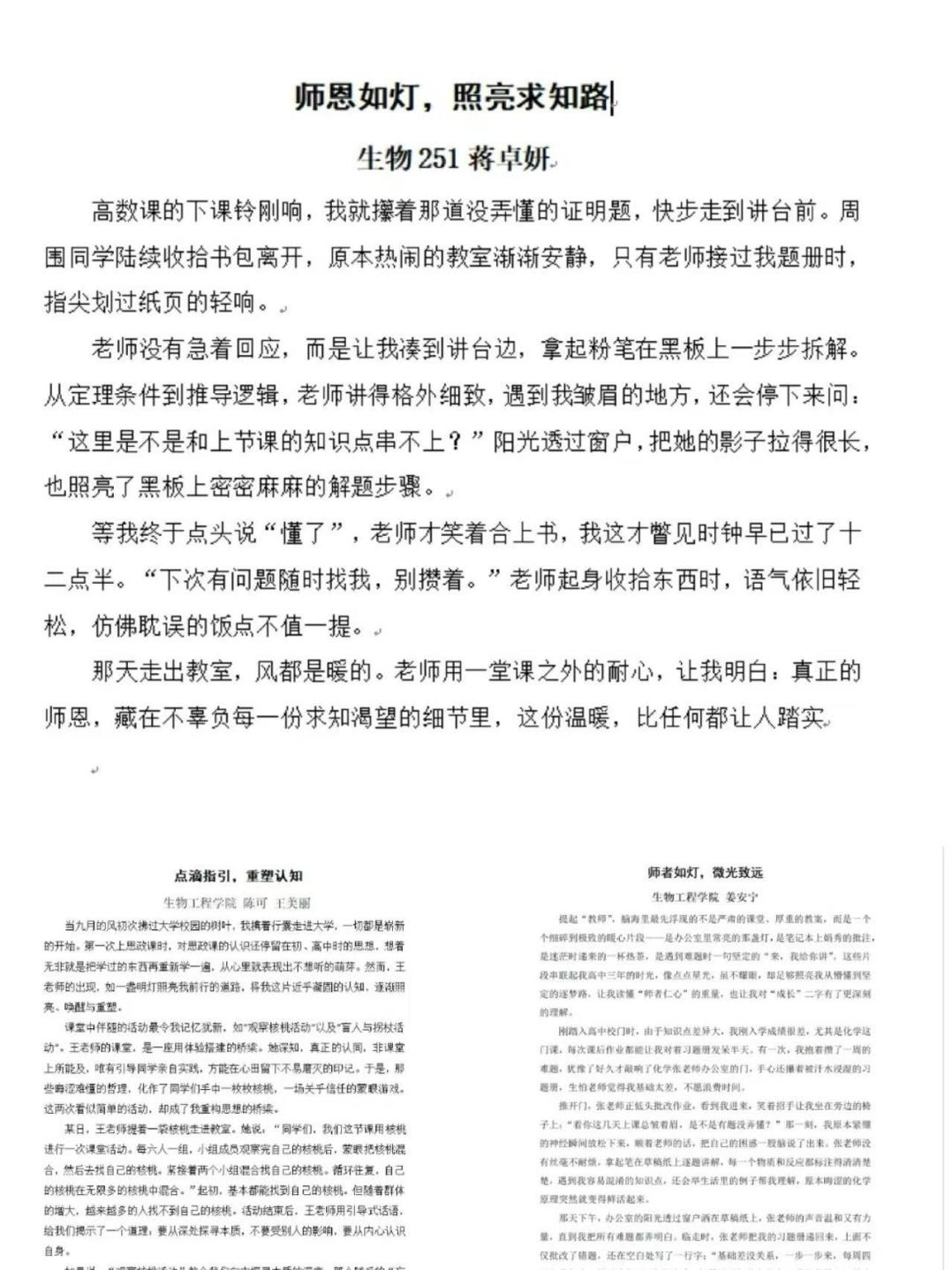 为深化师生情感联结,以文字为载体定格师生相处的温情瞬间,williamhill威廉希尔组织开展线上短文征集活动,在本次活动中,同学通过撰写短文的形式,分享与老师相处的暖心故事,诉说埋藏心底的感恩与敬意,展现师生间的温情点滴,让老师们读懂了学生未曾言说的心意与深情。