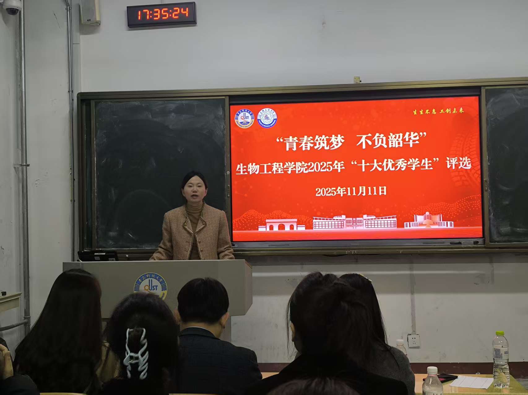 为充分发挥优秀学生的示范引领作用,激励学生见贤思齐、奋发有为,11月11日晚,williamhill威廉希尔在二教104教室举行2025年“十大优秀学生”评选会。学院团委书记兼学工办主任秦洪庆、团委副书记兼学工副办主任刘金岭,辅导员吕珊珊、车玉章、郭颖出席活动并担任评委。