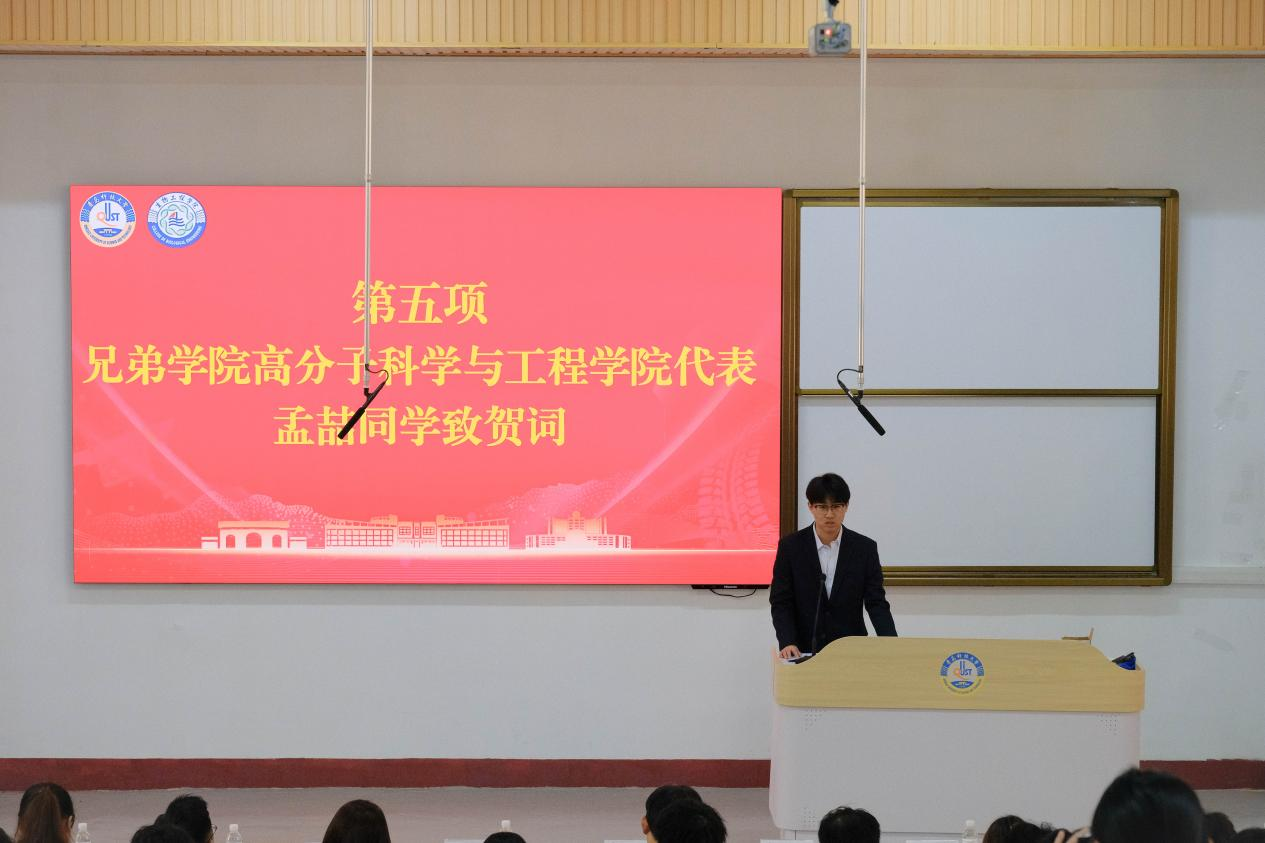 大会上,williamhill中国校学生会代表宁月婷、兄弟学院高分子科学与工程学院学生会代表孟喆分别致贺词,他们表示,与williamhill威廉希尔过往的协作历程中,始终秉持戮力同心、聚力笃行的协作精神,希望未来能进一步深化合作维度、精进协作效能,携手共谱发展新篇。随后,工作人员宣读各兄弟学院发来的贺信。贺信中,各兄弟学院对我院致以热烈祝贺,一致表示愿持续深化跨学院交流协作,弘扬科大精神,为实现中华民族伟大复兴和中国式现代化挺膺担当!