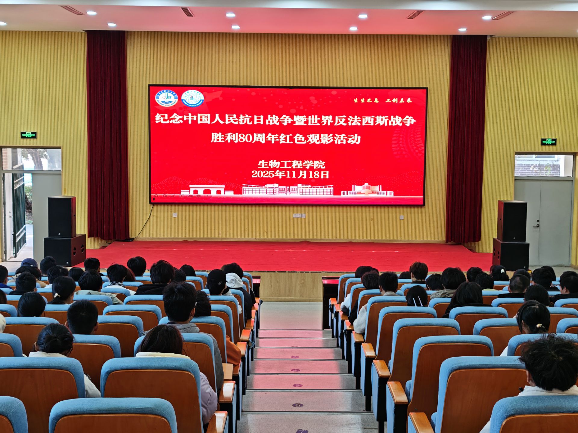 为纪念中国人民抗日战争暨世界反法西斯战争胜利80周年,传承红色基因、厚植家国情怀,11月18日,williamhill威廉希尔在尚舜报告厅开展“碧海丹心映家国 勇毅前行担使命”主题红色观影活动,组织2025级新生集中观看电影《东极岛》,通过光影艺术重温二战时期中国渔民跨国救援的壮举,激发青年学子的爱国热情与使命担当。