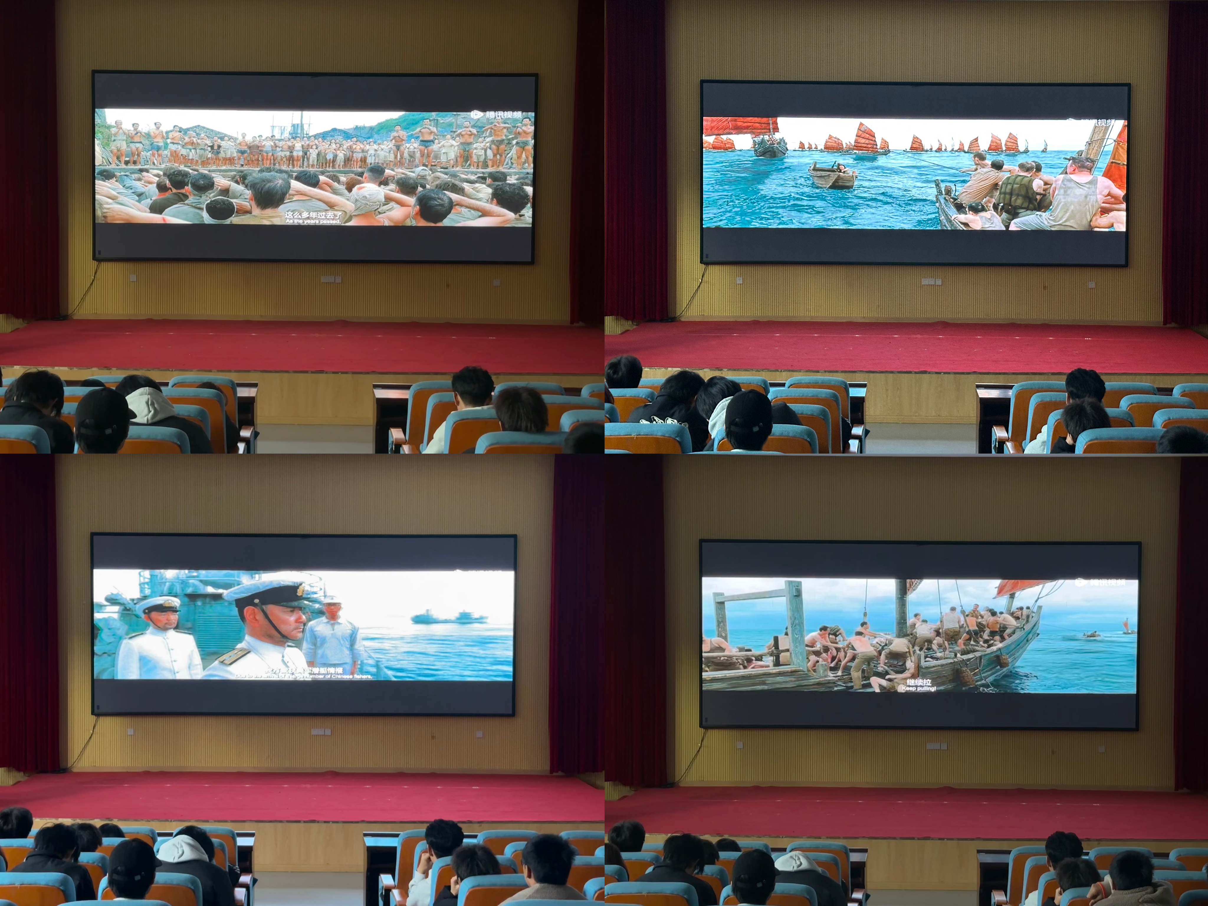 影片《东极岛》以1942年“里斯本丸沉船事件”为原型,聚焦舟山东极岛渔民在日军封锁下,冒死营救384名英军战俘的动人故事。当银幕上呈现渔民们用简陋舢板穿越枪林弹雨、在惊涛骇浪中凿开船舱救人的场景时,现场学生屏息凝神,不少人眼眶湿润。渔民们用生命诠释了‘生命至上’的价值观,这种超越国籍的善良与勇气,让学生深刻理解了中国人的精神脊梁。