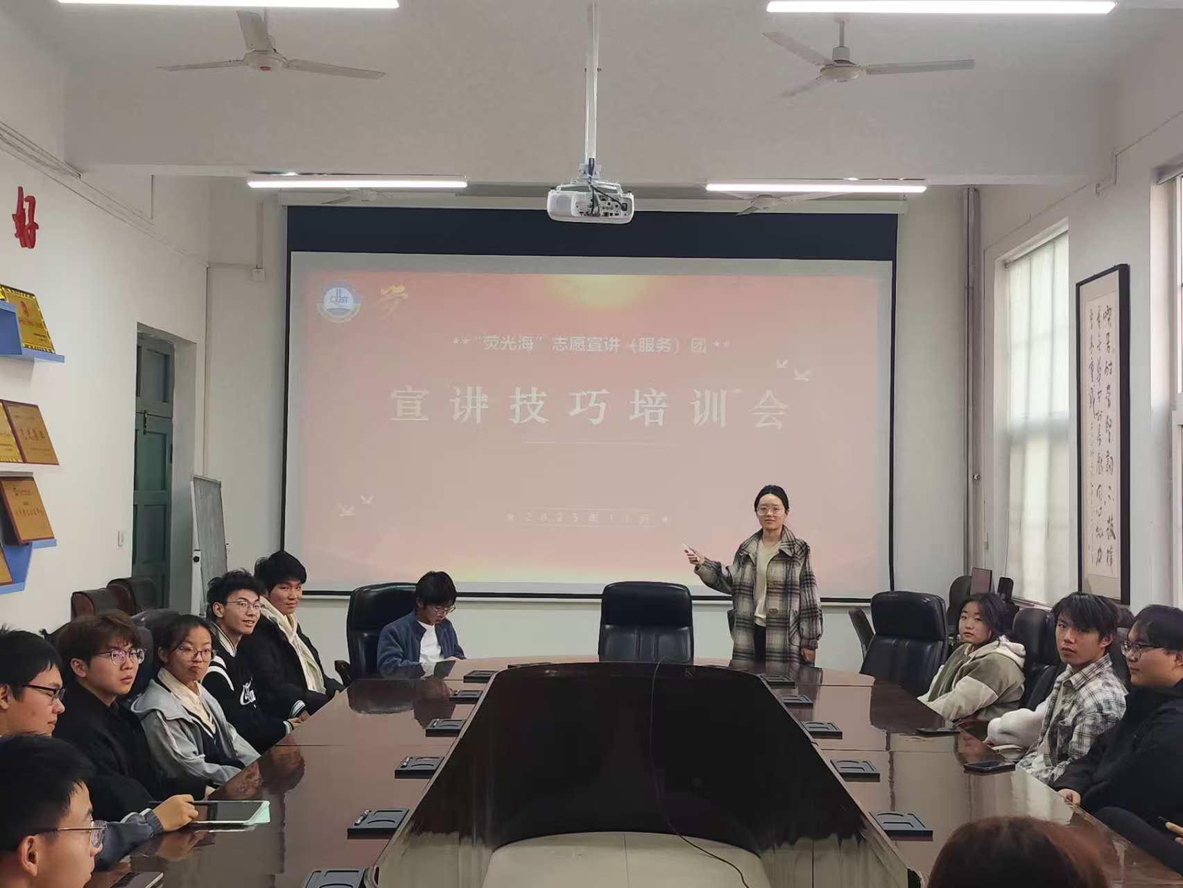 为持续提升团队专业宣讲能力与服务水平,11月29日,williamhill威廉希尔“荧光海”志愿宣讲(服务)团组织宣讲技巧专题培训。本次培训由宣讲团团长赵梦艳主讲,部分宣讲团骨干成员参加。
