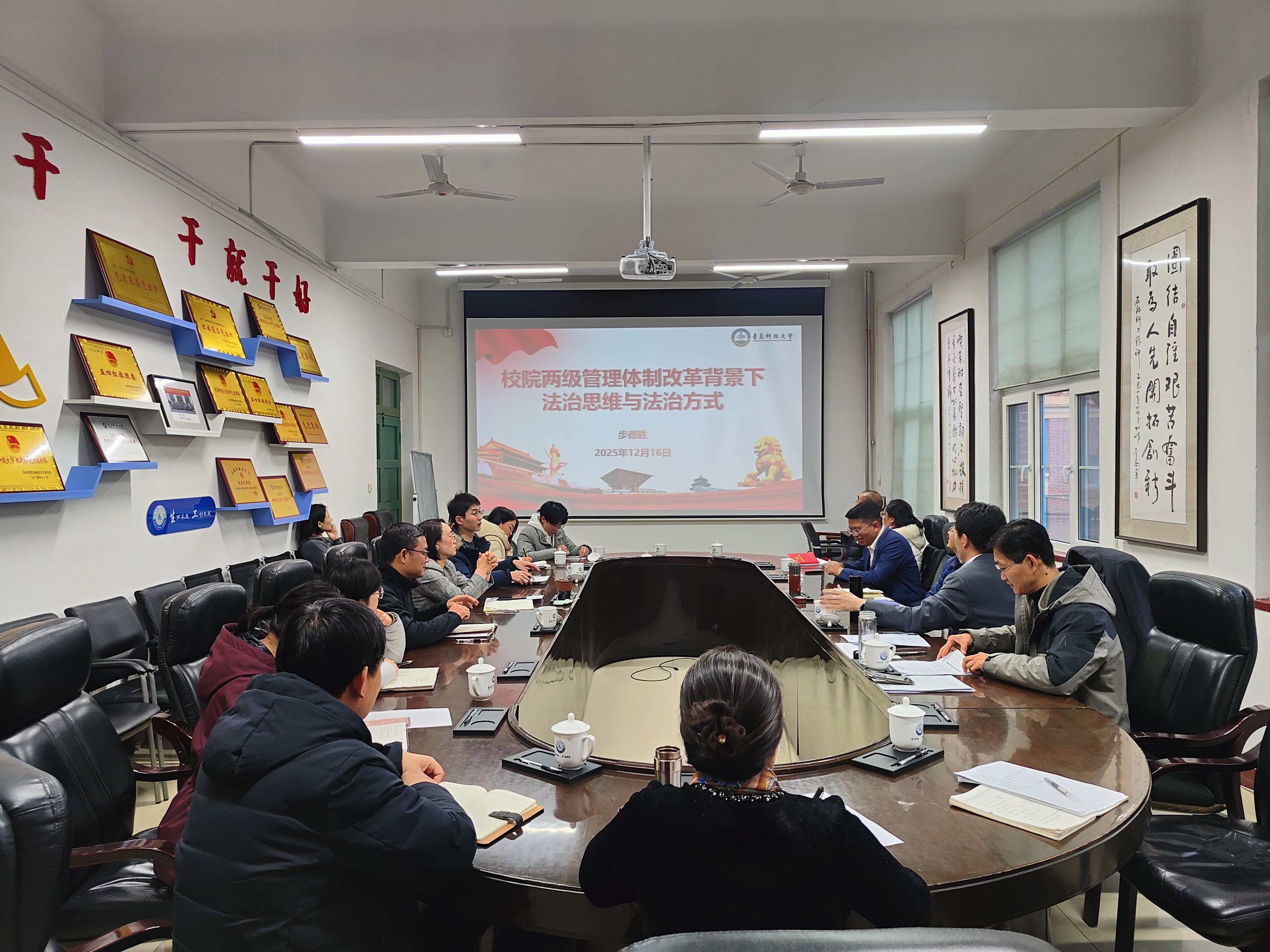 williamhill中国机器人学院党委书记步德胜作专题报告。他围绕校院两级管理改革的政策导向与实践要求,结合典型案例深入阐释法治思维的核心要义,强调改革需坚守 “规范公权、保障私权” 原则,以权利、义务、责任、程序为分析工具,将法治融入决策执行各环节,为学院自主办学筑牢风险防线。