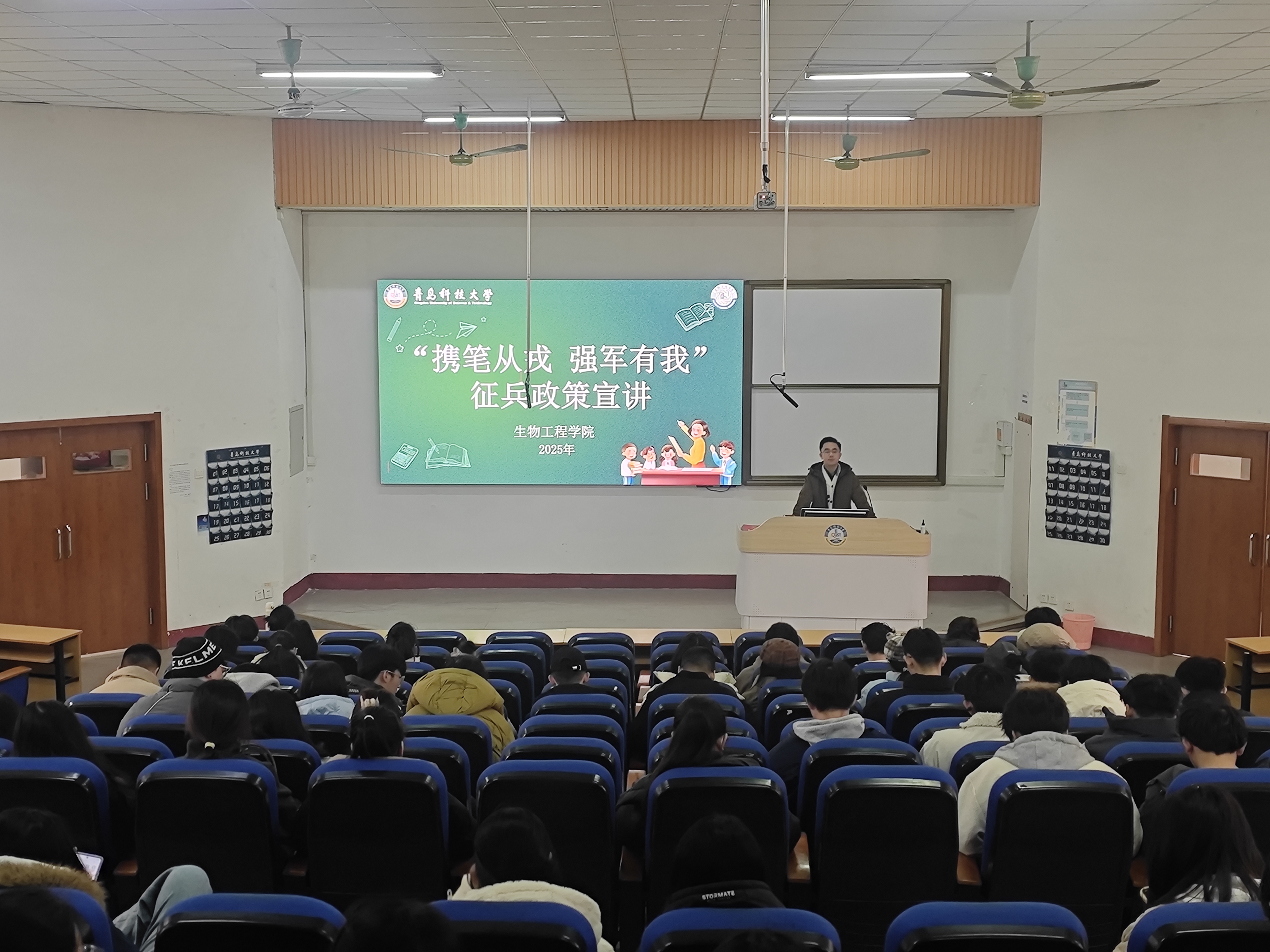 宣讲会上,车玉章围绕国家征兵工作的重大意义、当前征兵政策的最新变化与优待措施、入伍条件与流程、部队发展路径以及退役后学业衔接、就业扶持等同学们普遍关注的重点内容,进行了全面、细致、深入的解读。他结合往届学生参军入伍的鲜活实例,生动阐述了军营生活对锤炼意志、增长才干、拓展人生舞台的积极作用,鼓励同学们积极响应祖国号召,将爱国之心化为报国之行,把青春热血融入强国强军的伟大事业中。
