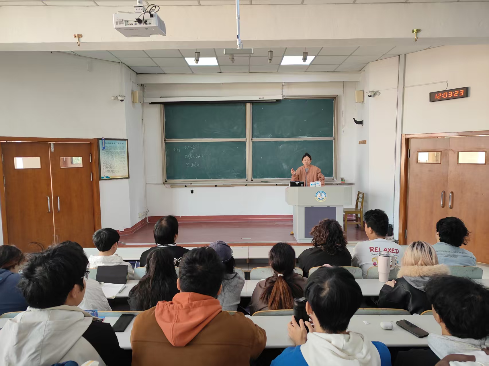 郭颖结合当前升学与就业形势,从自我认知、环境分析、目标设定、路径选择等方面系统阐述了生涯规划的重要性与方法。她通过往届学生的真实案例,详细解读了考研、保研、留学、求职等不同发展方向的特点与准备策略,并鼓励同学们尽早确立目标、扎实积累、积极行动。在交流环节,同学们踊跃提问,郭颖老师逐一解答,现场气氛热烈。