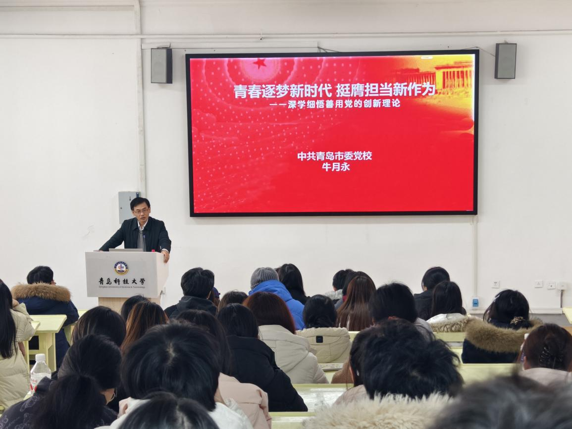 3月10日,学院邀请中共青岛市委党校牛月永副教授于一政243教室为全体学生党员、入党积极分子讲授“青春逐梦新时代,挺膺担当新作为”主题党课。牛月永结合新时代青年使命,勉励同学们坚定理想信念,将个人成长融入国家发展大局,在奋斗中擦亮青春底色。