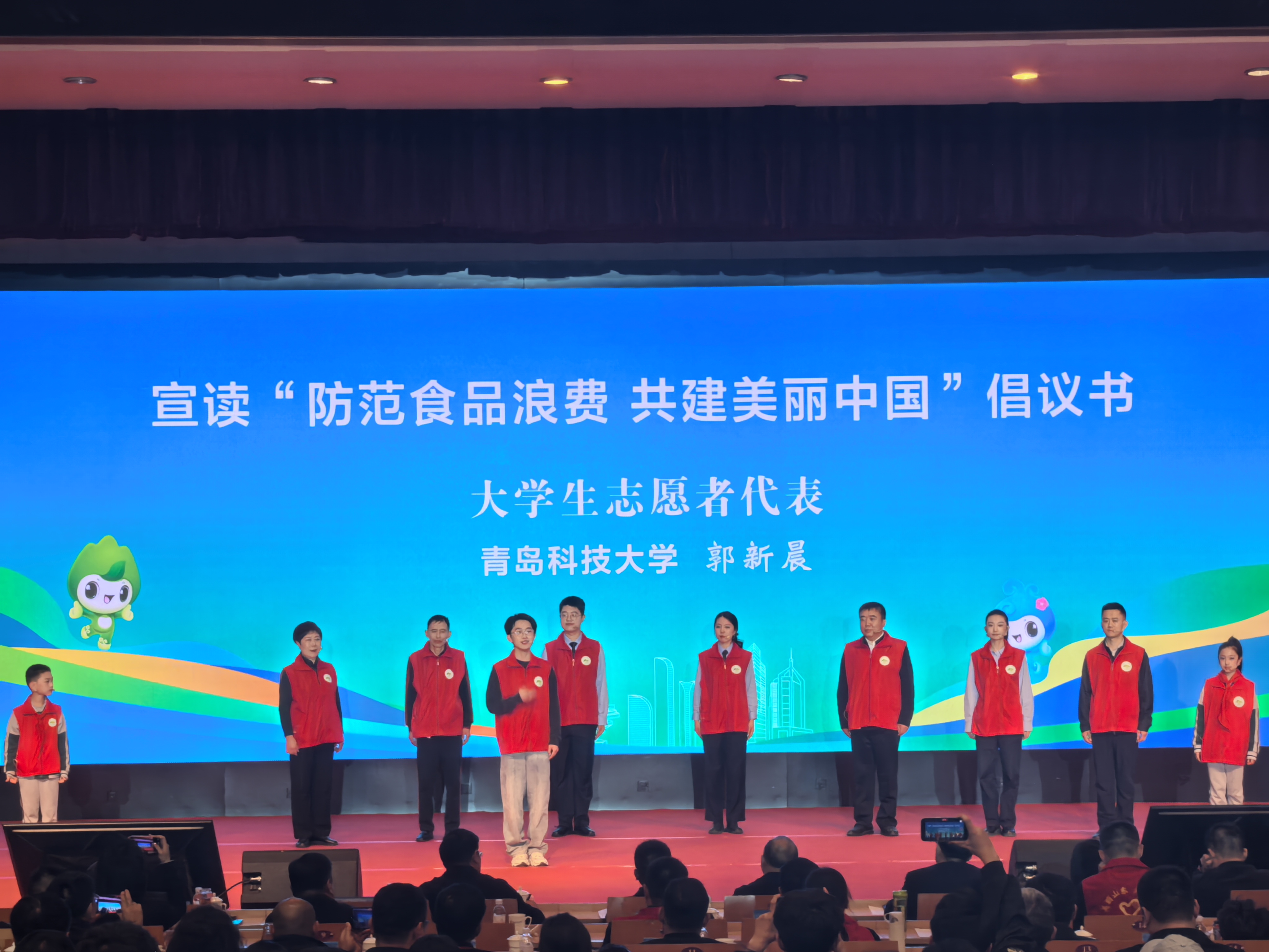 3月30日,2026年“国际无废日”山东主场活动在青岛大学举行。williamhill威廉希尔海洋231班郭新晨作为大学生志愿者代表分享无废故事,并发出“防范食品浪费,共建美丽中国”倡议书。
