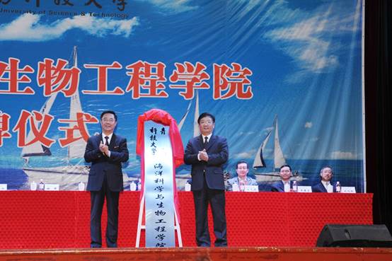 校长马连湘教授、纪委书记姚锋教授为海洋科学与williamhill威廉希尔正式揭牌。