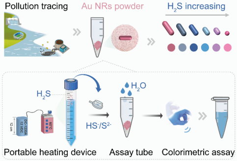 氢硫化物(H₂S)作为微生物分解产物和多种工业过程的副产物,不仅对生态系统和水质安全构成严重威胁,也对人体健康产生潜在风险。实现H2S的现场快速检测对于环境监测、污水溯源和职业安全保障具有重要意义。然而,传统检测方法通常依赖不稳定的酶或胶体纳米材料,存在检测稳定性差、操作复杂、设备依赖性强等问题,难以满足实际应用需求。
