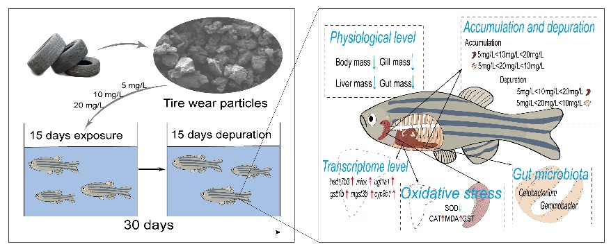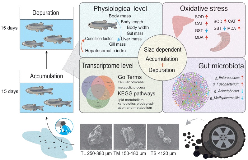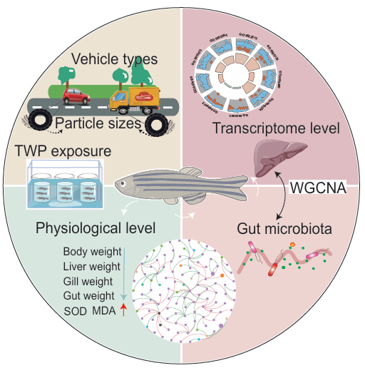 轮胎磨损颗粒(Tire Wear Particles, TWPs)是交通活动产生的重要微塑料污染物,广泛存在于土壤、水体和大气中,对水生生态系统的潜在威胁日益受到关注。然而,不同粒径、来源及浓度的TWPs在生物体内的毒理作用机制仍不清晰。为系统揭示TWPs的毒性规律及其对宿主与肠道微生物互作的影响,williamhill中国海洋学院丛静副教授指导张云、赵天宇、宋倩倩、孟庆轩等研究生,开展了一系列系统研究,并取得重要进展。