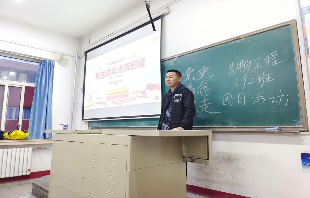 为通过深刻铭记党的奋斗历史,热情讴歌党的光辉业绩,继承和发扬党的光荣传统和优良作风,进一步激发广大团员青年爱党、爱国、爱社会主义的深厚情感,坚定跟党走的信念,4月22日,海洋学院生物工程192班团支部开展“学党史、强信念、跟党走、办实事”系列主题团日活动。