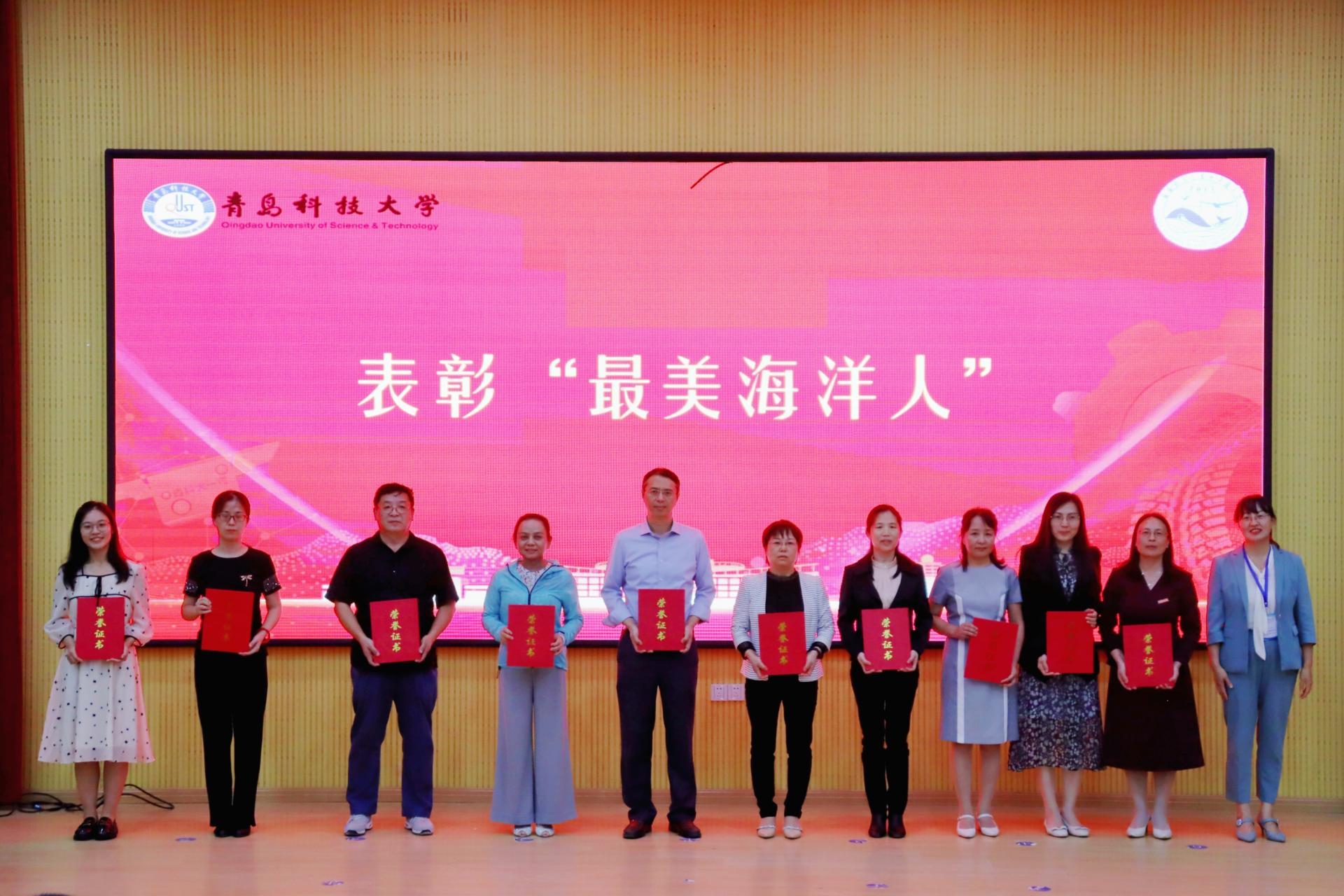 党总支书记周宪锋为2021级班主任颁发聘书及工作手册,宣读表彰“最美海洋人”相关文件。