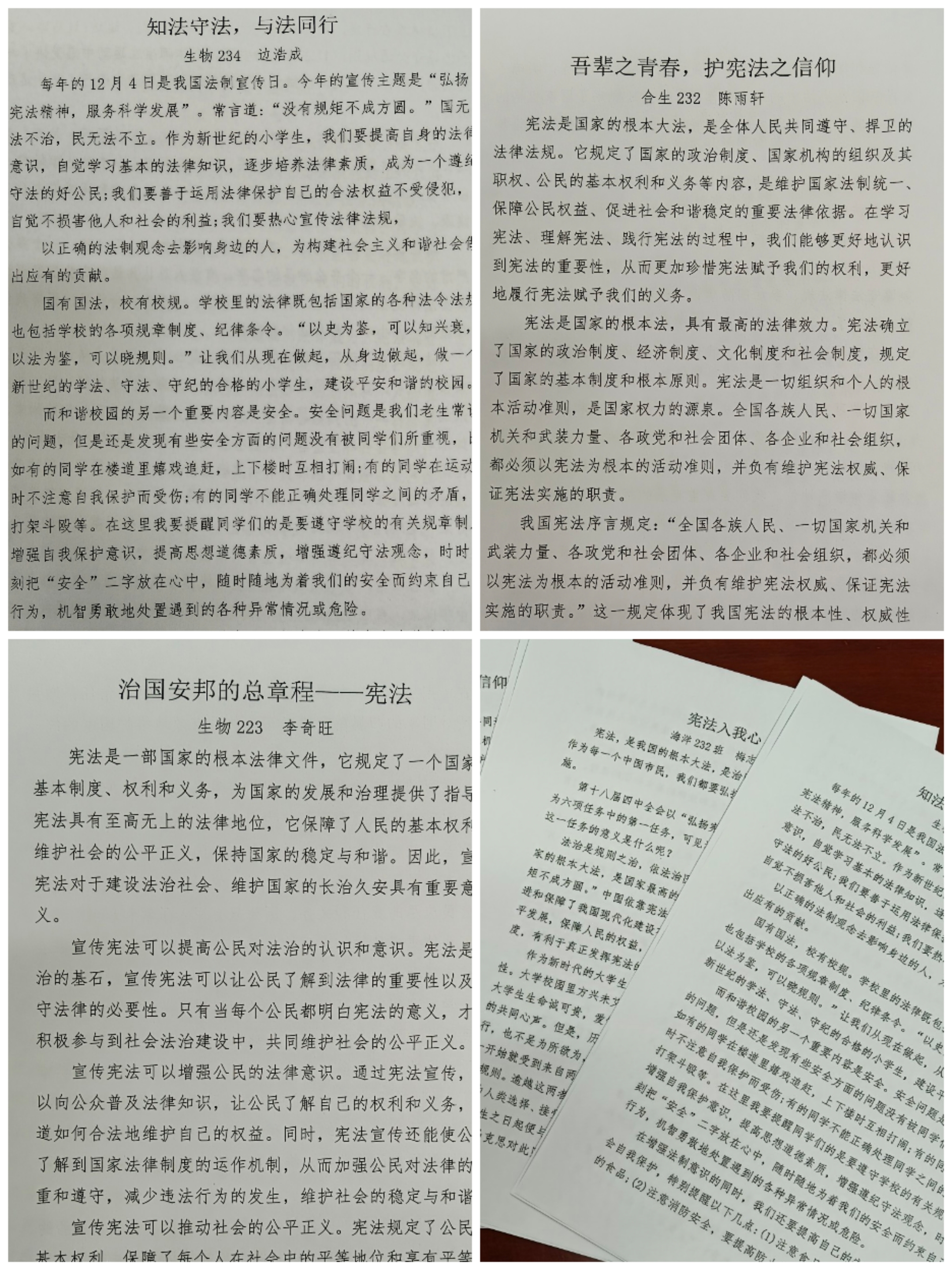 在宪法日征文比赛中,学生们紧紧围绕宪法与国家、社会、个人息息相关的大小事例,借助文字的力量充分展示了法律在学习、工作、生活中的重要性,并号召大家做一个知法守法的合格公民。