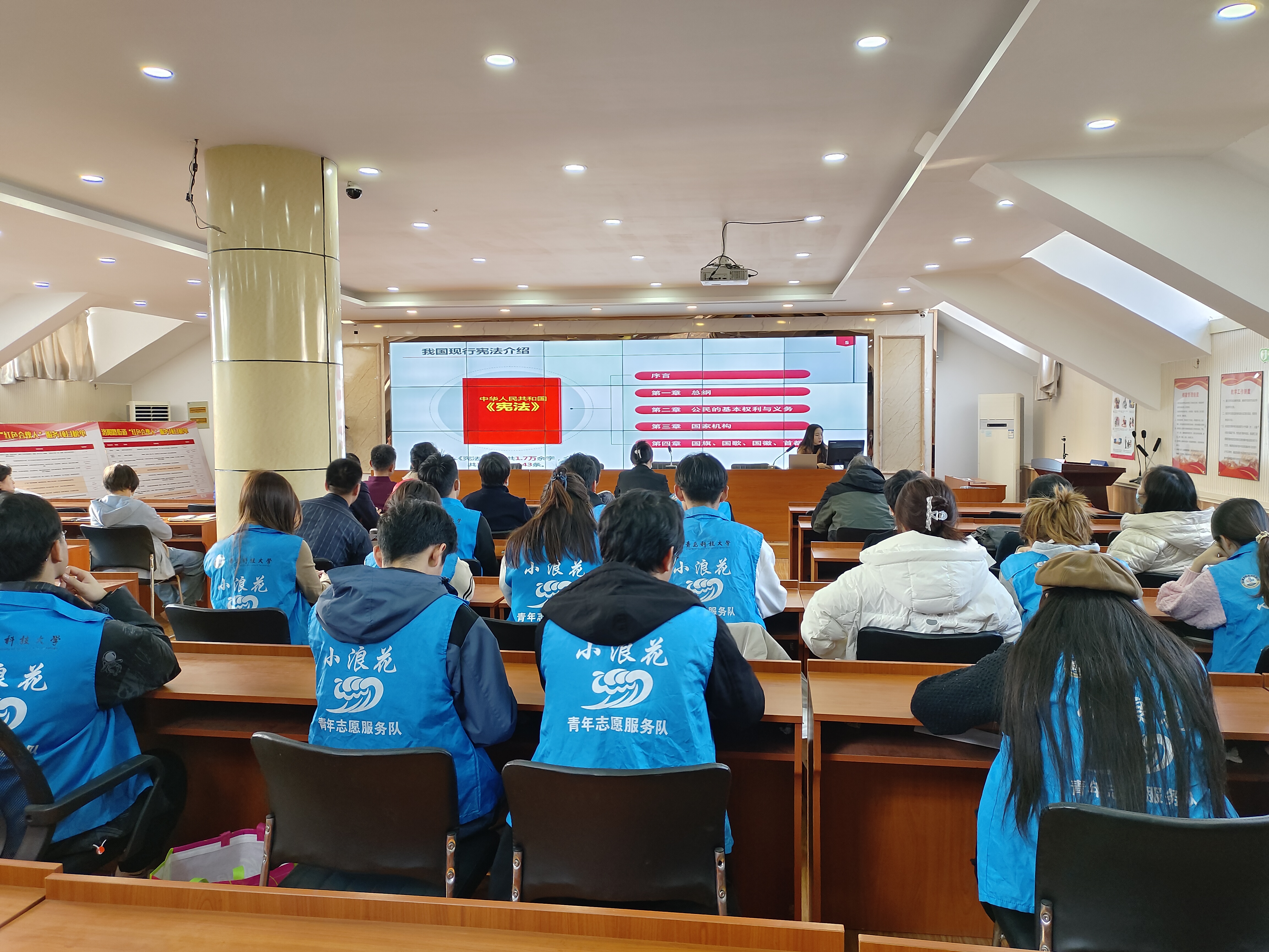 在第十个国家宪法日到来之际,海洋学院2022级轻化1班、轻化2班团支部在市北区洛阳路街道办事处参加了“大力弘扬宪法精神,建设社会主义法治文化”宪法宣传周活动。活动中,同学们纷纷表示要做宪法精神的宣扬者,增强宪法意识,做到知法、懂法、守法,法治建设贡献自己的青春力量。