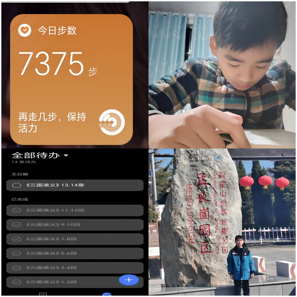 本次云支教活动主要是带领与自己搭档的中小学生打卡运动,辅导寒假作业,一起阅读等等。我们一起有计划地阅读了青少年版的《三国演义》,一起完成了寒假作业并监督背诵古诗,一起观看了多场云课堂直播,寒假期间,我们相伴坚持运动打卡。我们一起打卡了孟良崮战役所在地,了解了孟良崮山的来源以及孟良崮战役的具体情况。