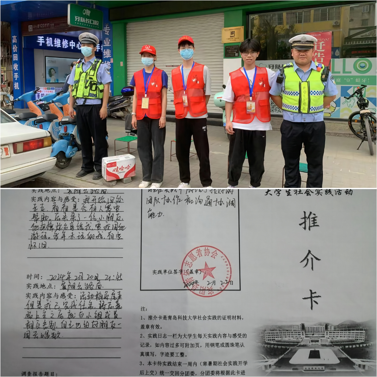 轻化221蒙尚在南宁市宾阳县宾州镇跟随志愿服务社团协助交警疏通管制路段交通,以自身的学习历程和成长经验向群众分享交通违法行为的不利之处,倡导骑行电动车要戴好头盔、严禁闯红灯、乱穿马路、超员驾驶等交通违法行为,充分发挥返乡大学生志愿者的“榜样”带动作用。合生231李泽琰在临清市配合汽车站开展安全宣传提醒、乘车引导、行李搬运、咨询指引、老年人及重点人群服务等志愿服务,打造温暖舒适、温馨和谐的车站环境,让旅客出行更便捷畅通。