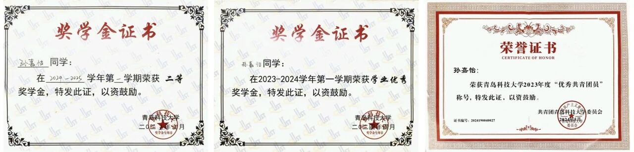 williamhill中国校二等奖学金两次,williamhill中国社会实践奖学金一次,williamhill中国学业优秀奖学金一次,优秀共青团员一次。
