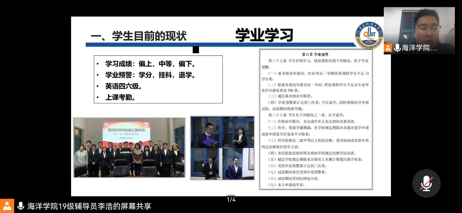 10月18日,海洋学院在腾讯会议召开“家校携手,协同育人”——海洋学院2019级线上家长会。海洋学院部分家长参加会议,会议由海洋学院2019级辅导员李浩主持并做主讲。