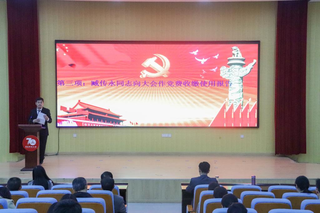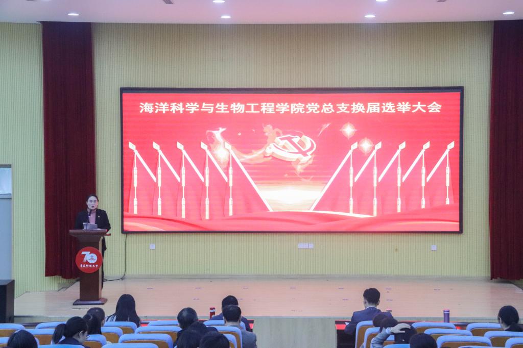 大会在庄严的国歌声中拉开帷幕。党总支书记周宪锋同志代表上一届委员会作了题为《从严从实抓党建,凝心聚力谋发展》的工作报告。报告认真总结学院三年以来的各项工作,学院党总支在校党委的领导下,团结带领全院党支部、广大党员和师生员工,按照校党委的统一部署,坚持“六个到位”,力抓规范化建设,坚持“六个融合”,助推高质量发展等举措,在学院组织建设、思想建设、作风建设、学科建设和平台建设等方面都取得了可喜成绩,同时,报告也分析了学院党总支工作面临的形势与挑战。此外,报告还提出学院党总支今后的奋斗目标,持之以恒加强党的建设,筑牢“四个意识”;持之以恒加强师资队伍建设,实施人才强院;持之以恒加强学生教育管理,打造工作品牌。以习近平新时代中国特色社会主义思想为指导,团结带领全院教职员工,努力建设具有海一样宽广胸怀、海一样深厚底蕴的幸福海院、书香海院、特色海院,为国家的海洋战略、为青岛的蓝色经济、为学校的高质量发展做出新的更大的贡献。
