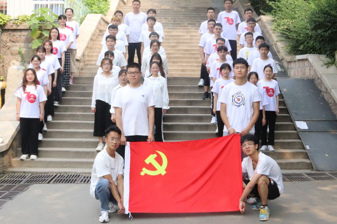 活动中,同学们在党旗的见证下用朴实的话语深情表达对党的热爱,对党永葆青春活力的美好祝愿,表达了永远感党恩、听党话、跟党走的信心和决心。青年党员和团员手执鲜红的党旗,与党旗亲密合影。大家以最灿烂的笑容、最坚定的自信,把自己最美的一面展现在党旗下。一面党旗,一颗初心,缀有金黄色党徽图案的旗帜,深刻地烙印在党员团员心中。大家摆出各种造型,诠释矢志不渝跟党走的坚定信念和一心为民的赤诚之心。