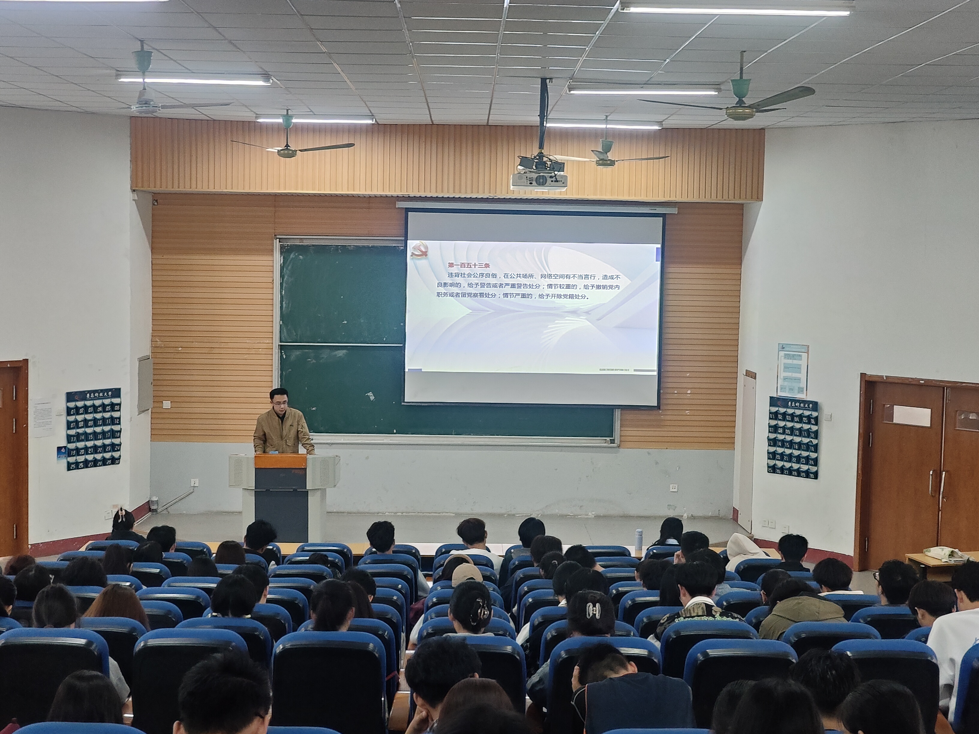 车玉章以《学好用好纪律处分条例 全面加强党的纪律建设》为题,宣讲党的纪律建设深刻内涵和新《条例》的主旨要义,重点强调了《条例》所做修订的部分,并通过案例阐明了新《条例》修订的针对性与及时性。车玉章引导全体参会学生锤炼道德品行,要求全体学生党员、发展对象和积极分子带头学纪、知纪、明纪、守纪,自觉维护纪律的严肃性和权威性。参会学生展开讨论并积极发言表态。